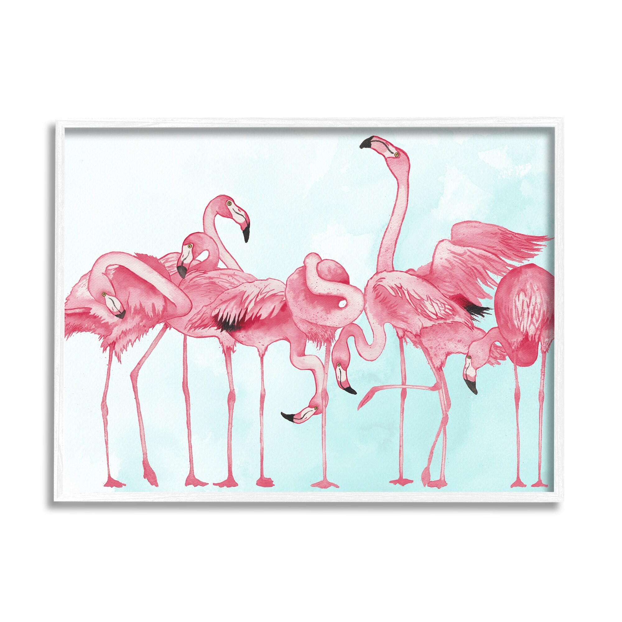 Stupell Industries Bold Pink Flamingo Flock Framed Giclee Art by Elizabeth Medley