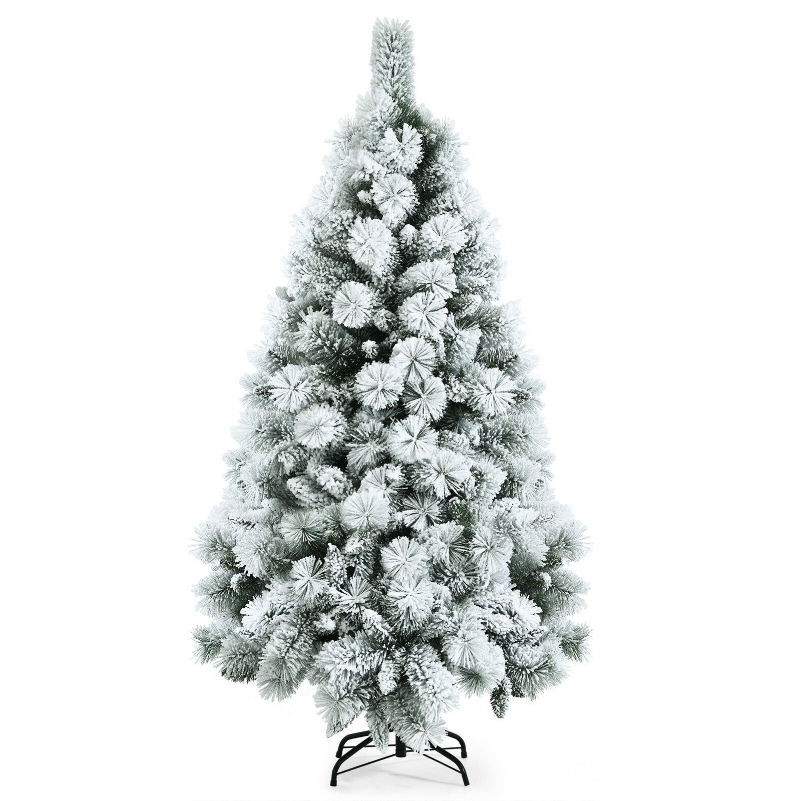 Flocked Hinged Artificial Christmas Slim Tree with Pine Needles