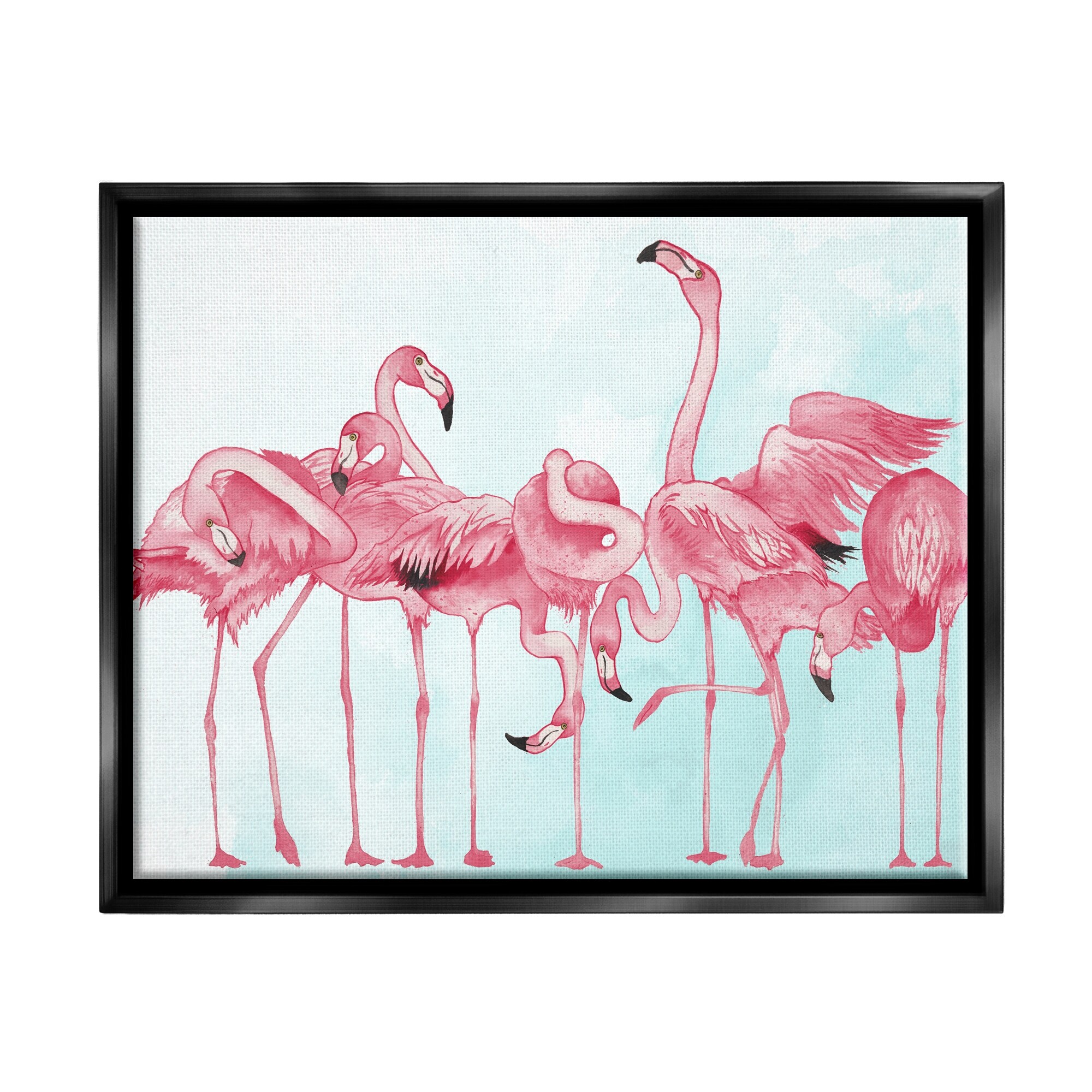 Stupell Industries Bold Pink Flamingo Flock Framed Floater Canvas Wall Art by Elizabeth Medley