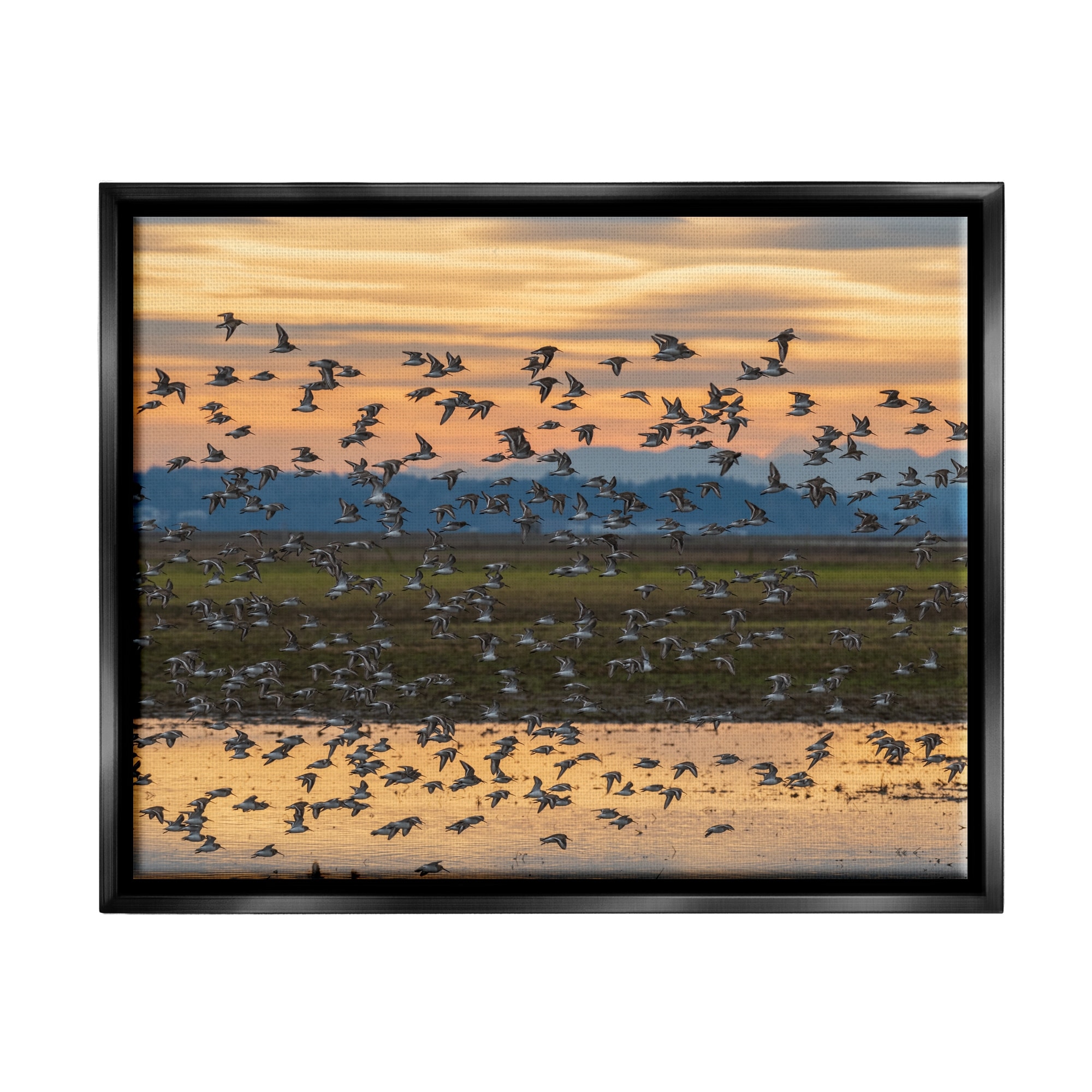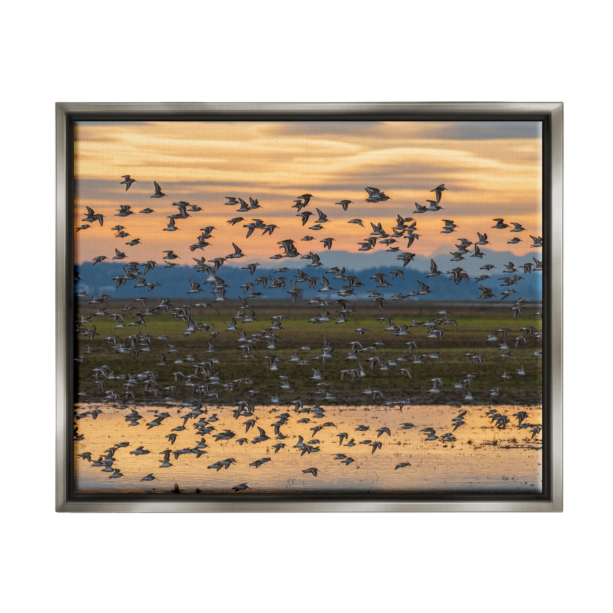 Stupell Industries Flock of Birds Flying Lake Reflection Orange Sunset Floater Frame, Design by Nancy Crowell