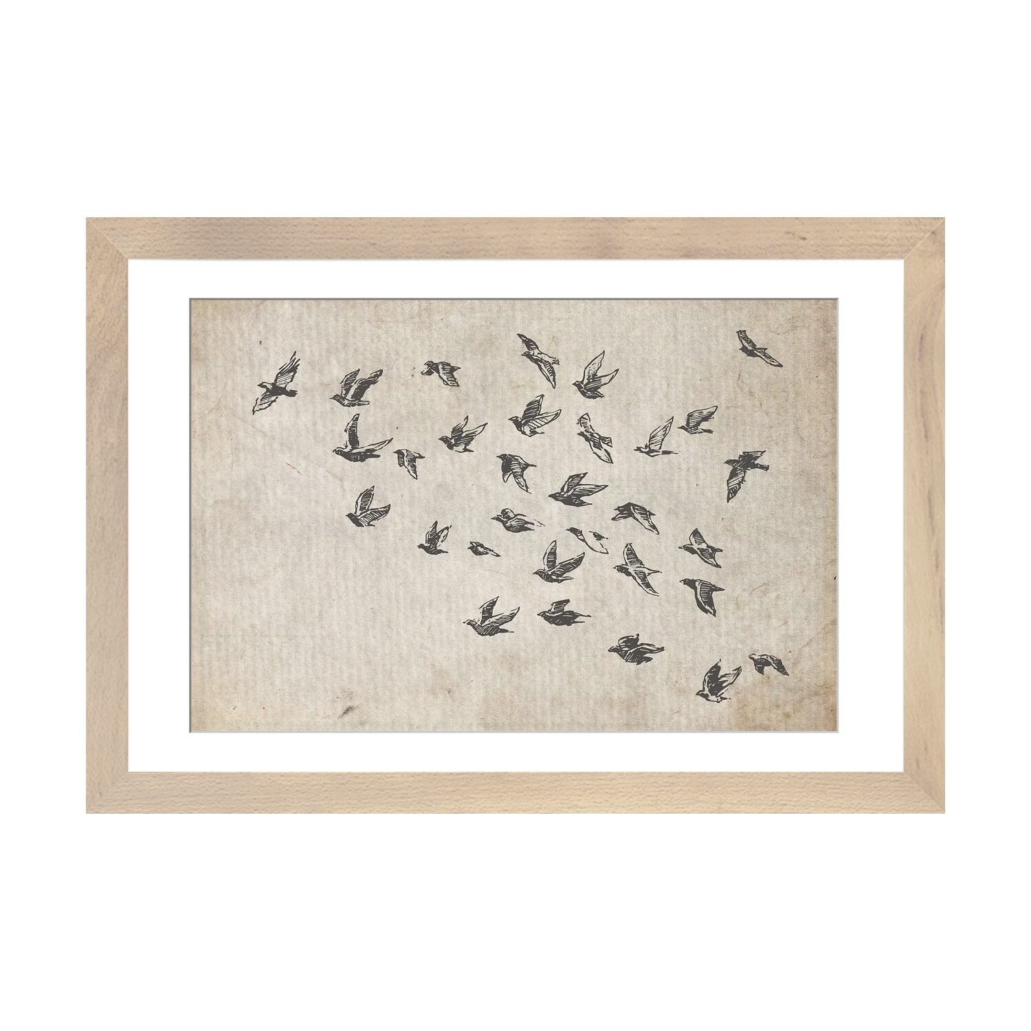 Designart 'Flock Of Birds Flying on Pastel Background Silhouttes of Wings I' Lake House Print on Natural Pine Wood