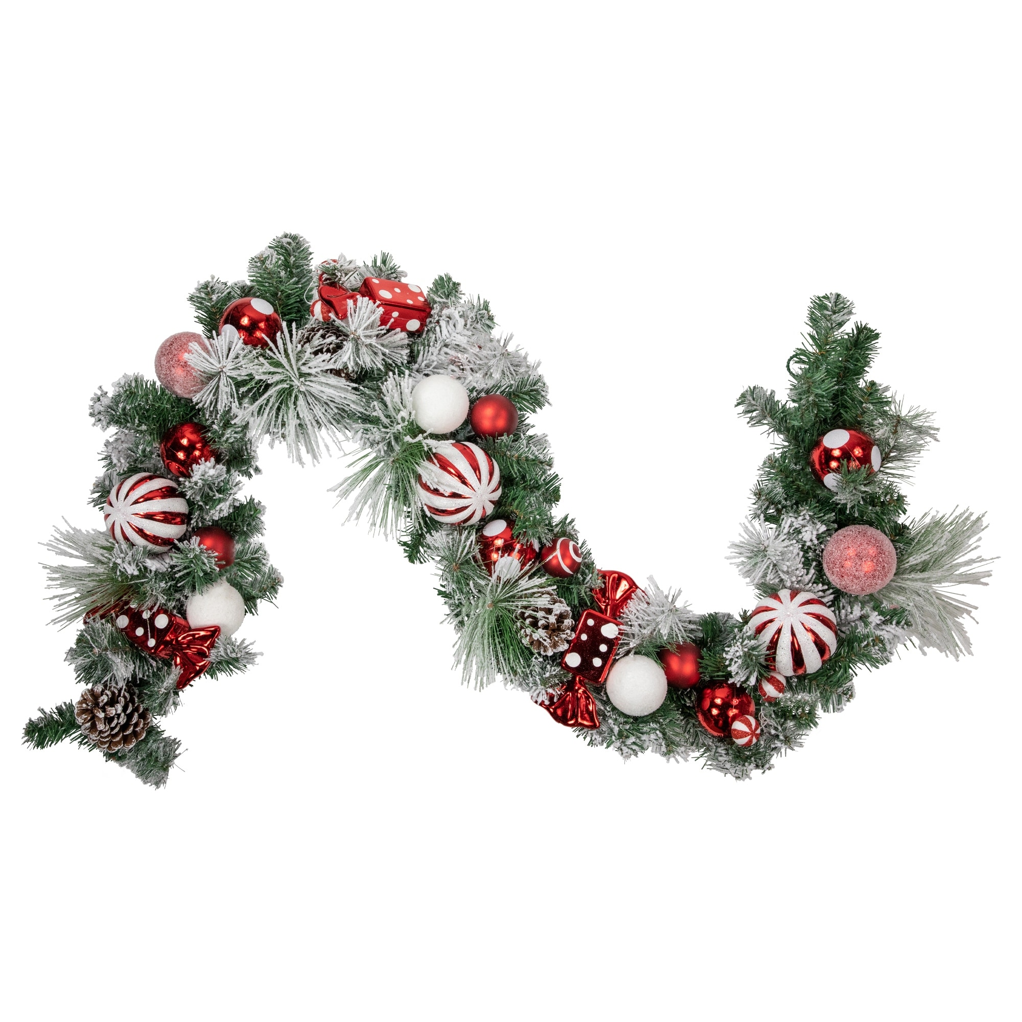 6' Flocked Pine Artificial Christmas Garl with Cy Ornaments Pinecones - White