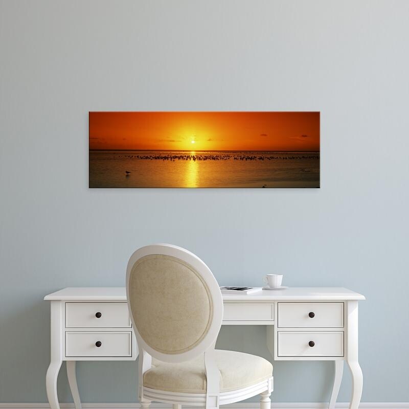 Easy Art Prints Panoramic Image 'Flock of seagulls on the beach at sunset, South Padre Island, Texas, USA' Canvas Art