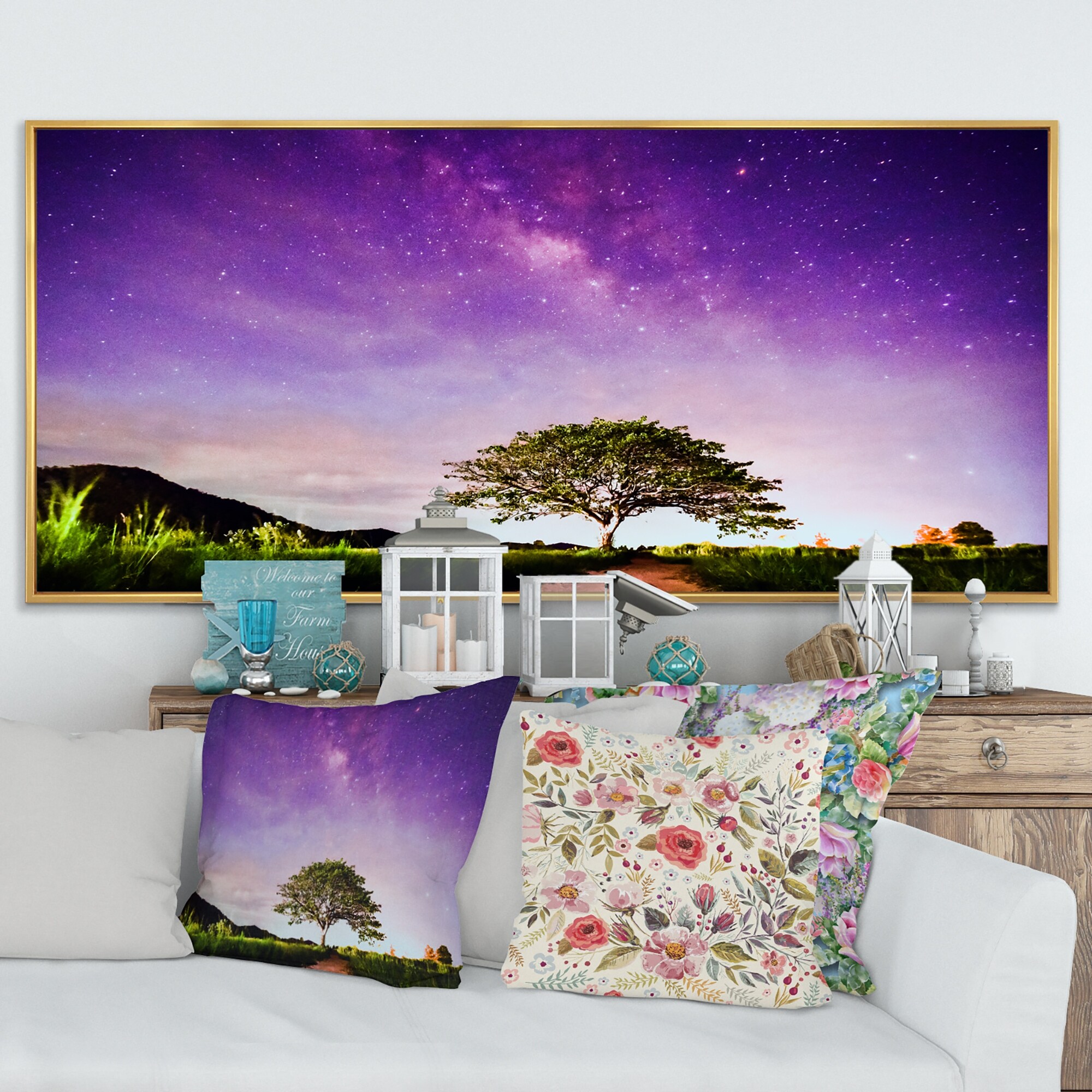 Designart "Tree On Purple Galaxy Sky" Landscapes Canvas Wall Decor