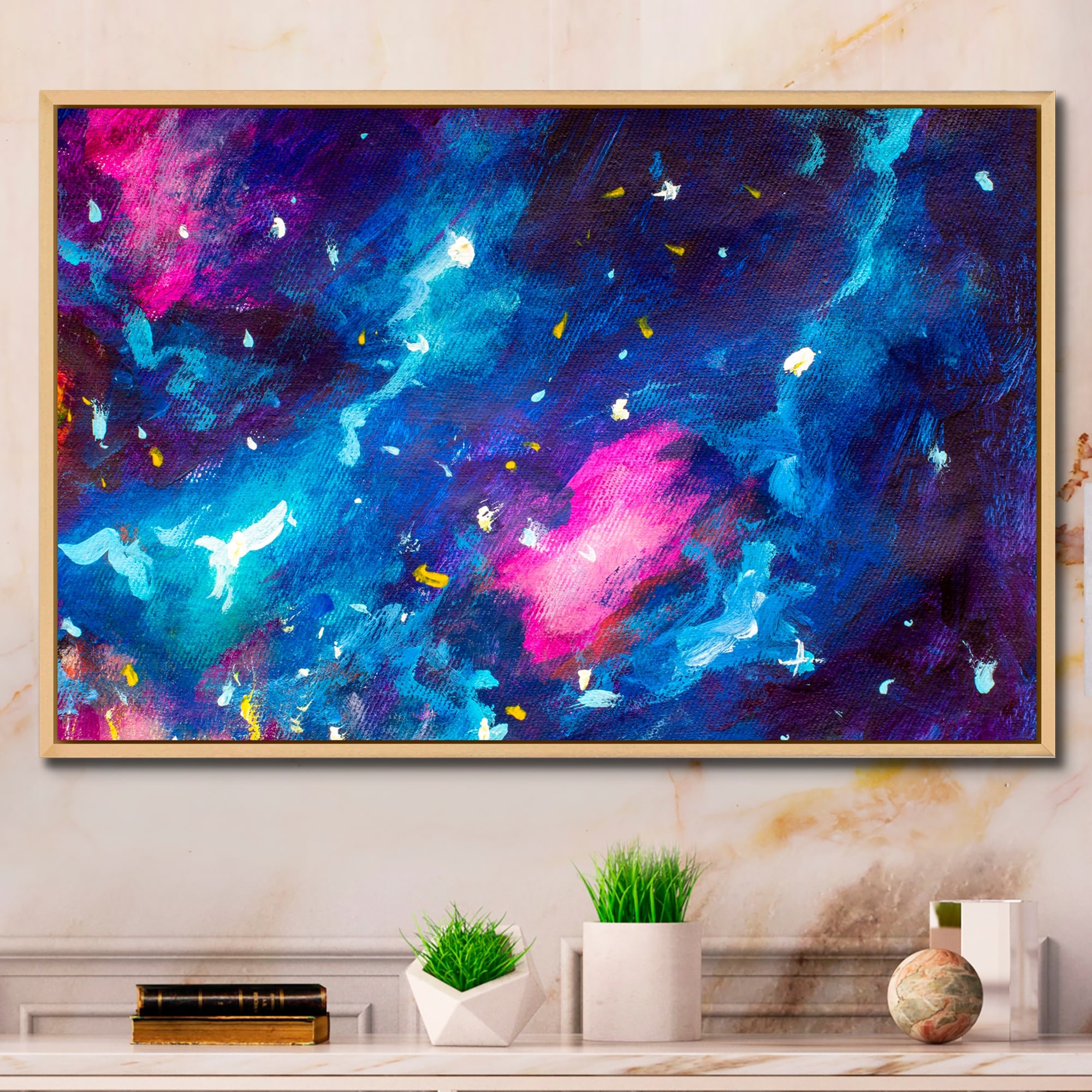Designart "Blue Violet Galaxy" Modern Framed Canvas Wall Art