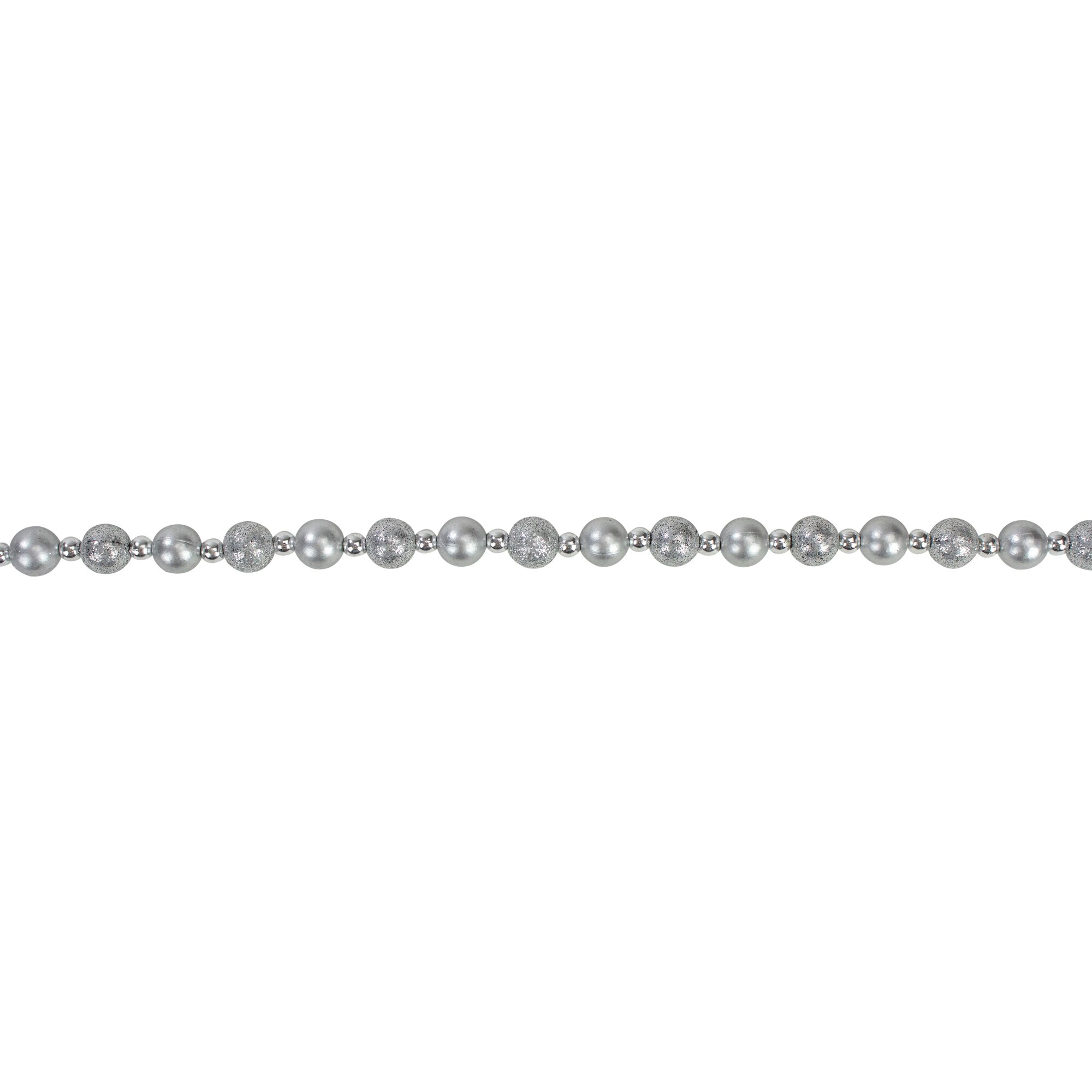 9' Glittered and Flat Silver Beaded Christmas Garland - Unlit