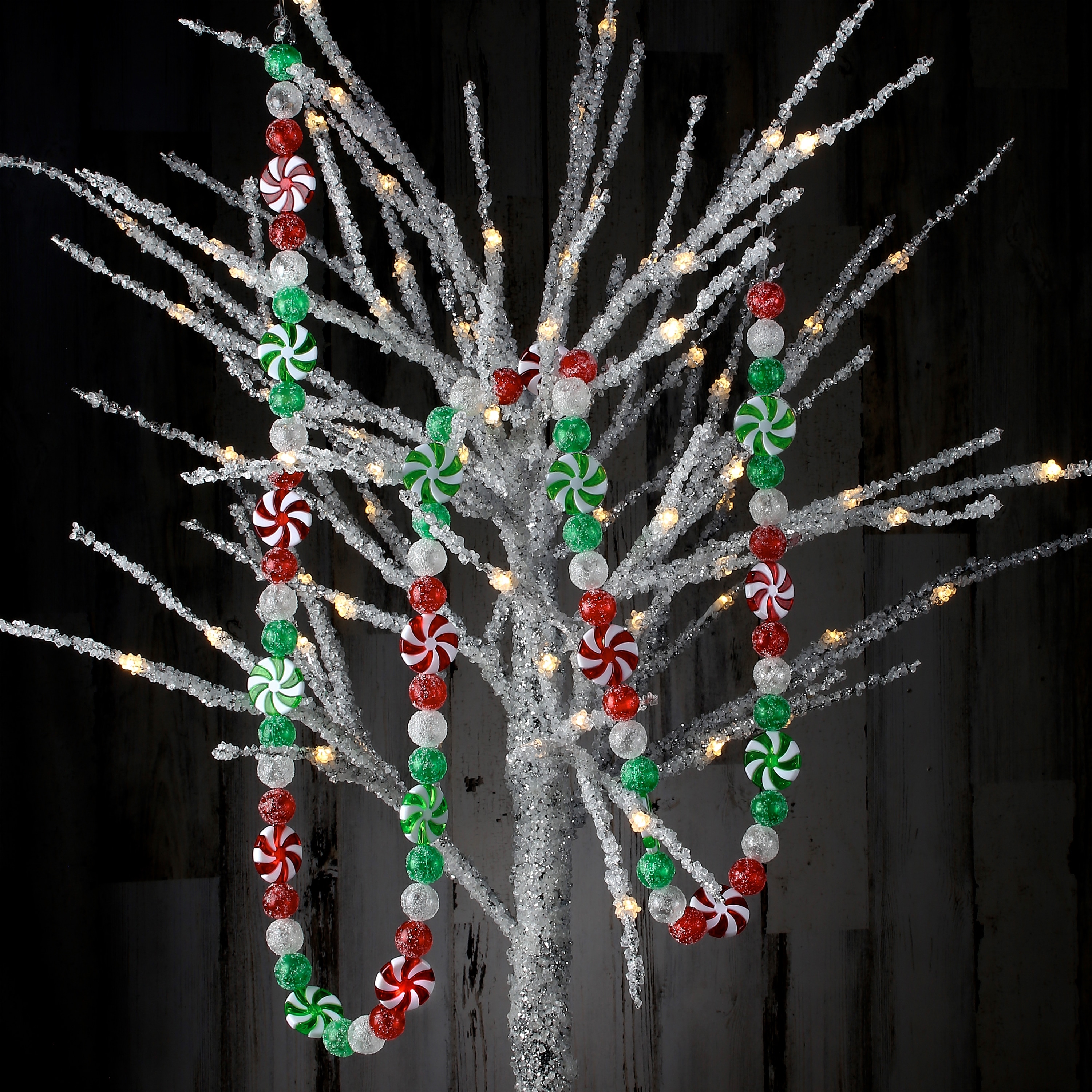 9' Twisted Iridescent and Silver Beaded Christmas Garland - Unlit
