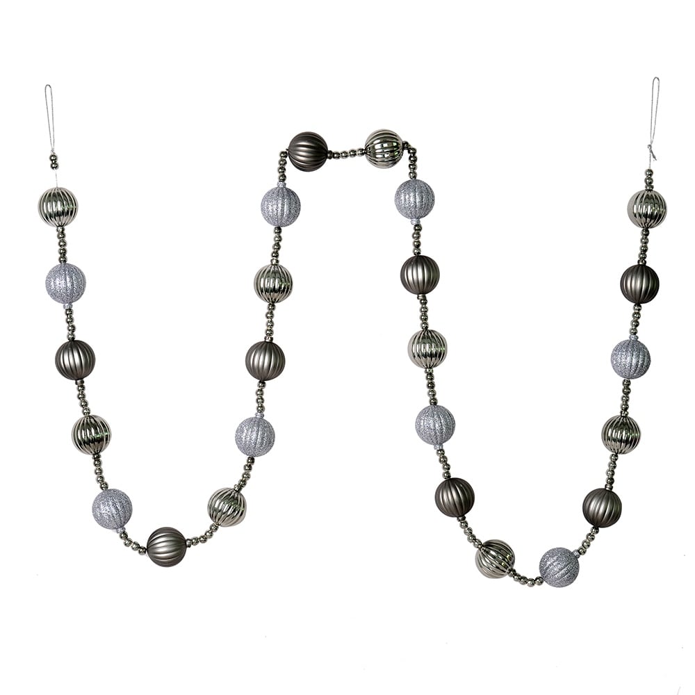 Vickerman 6' Pewter Stripe Ball Ornament Christmas Garland