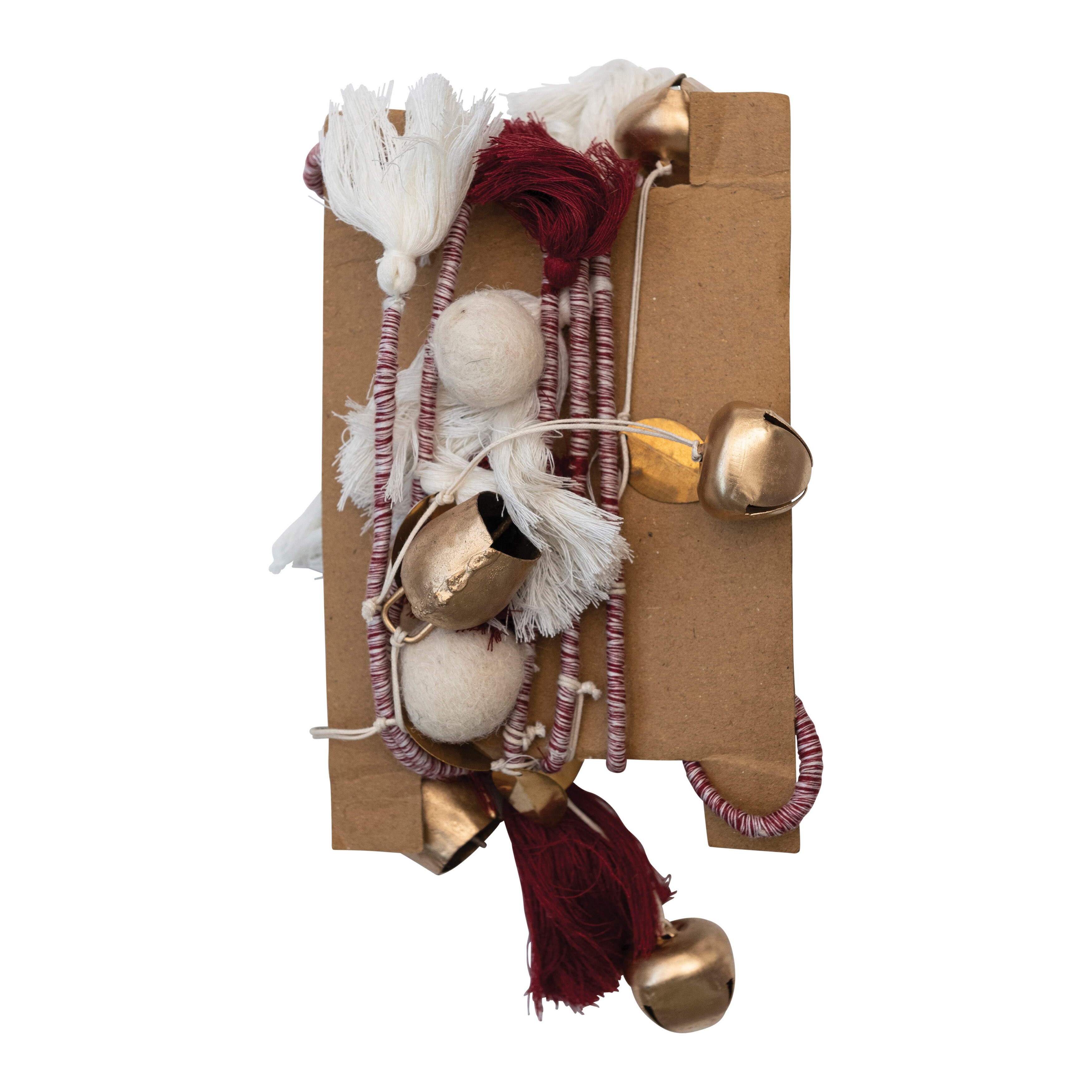 Metal Bell Garland with Cotton Tassels and Pom Poms - Cream - 72.0"L x 0.3"W x 1.0"H