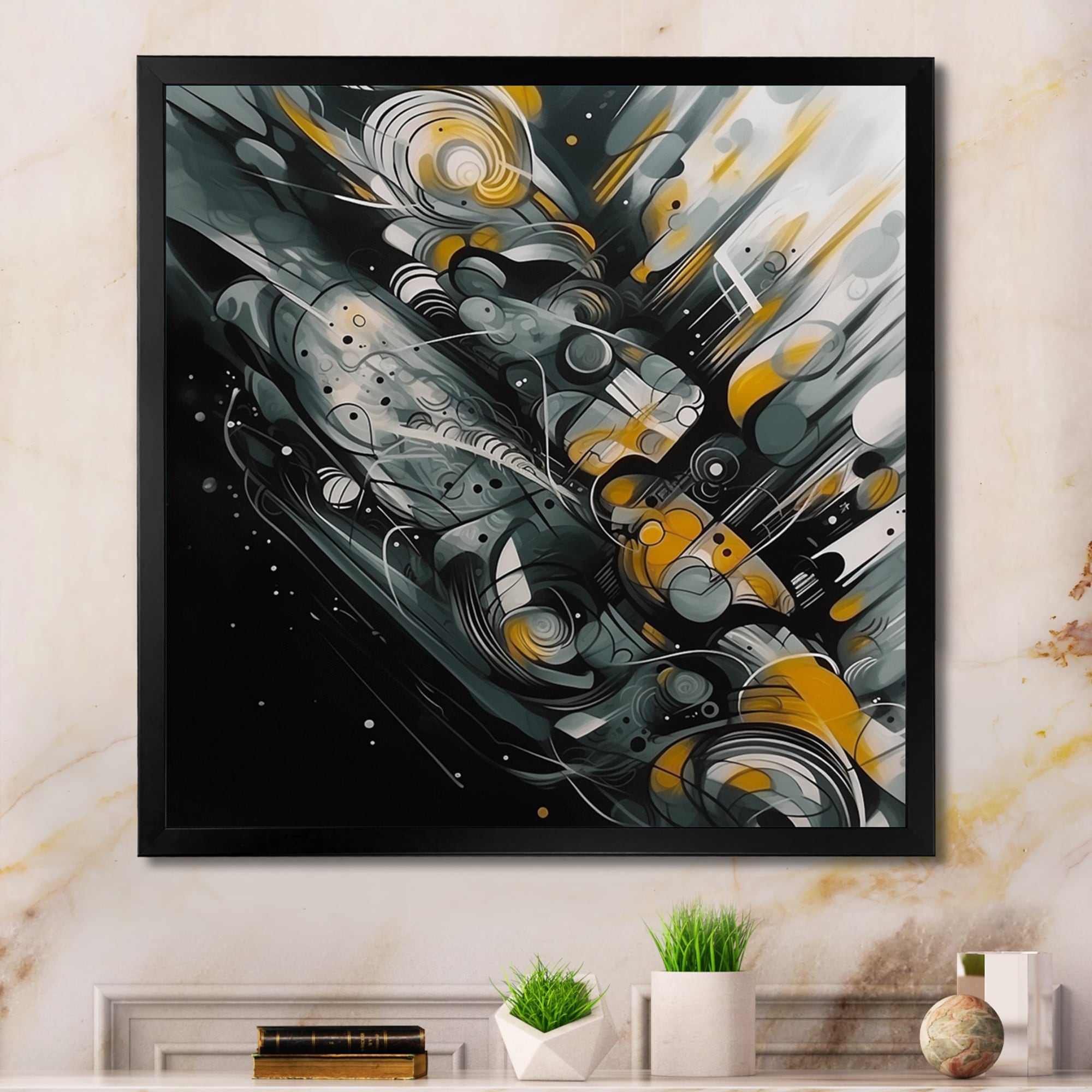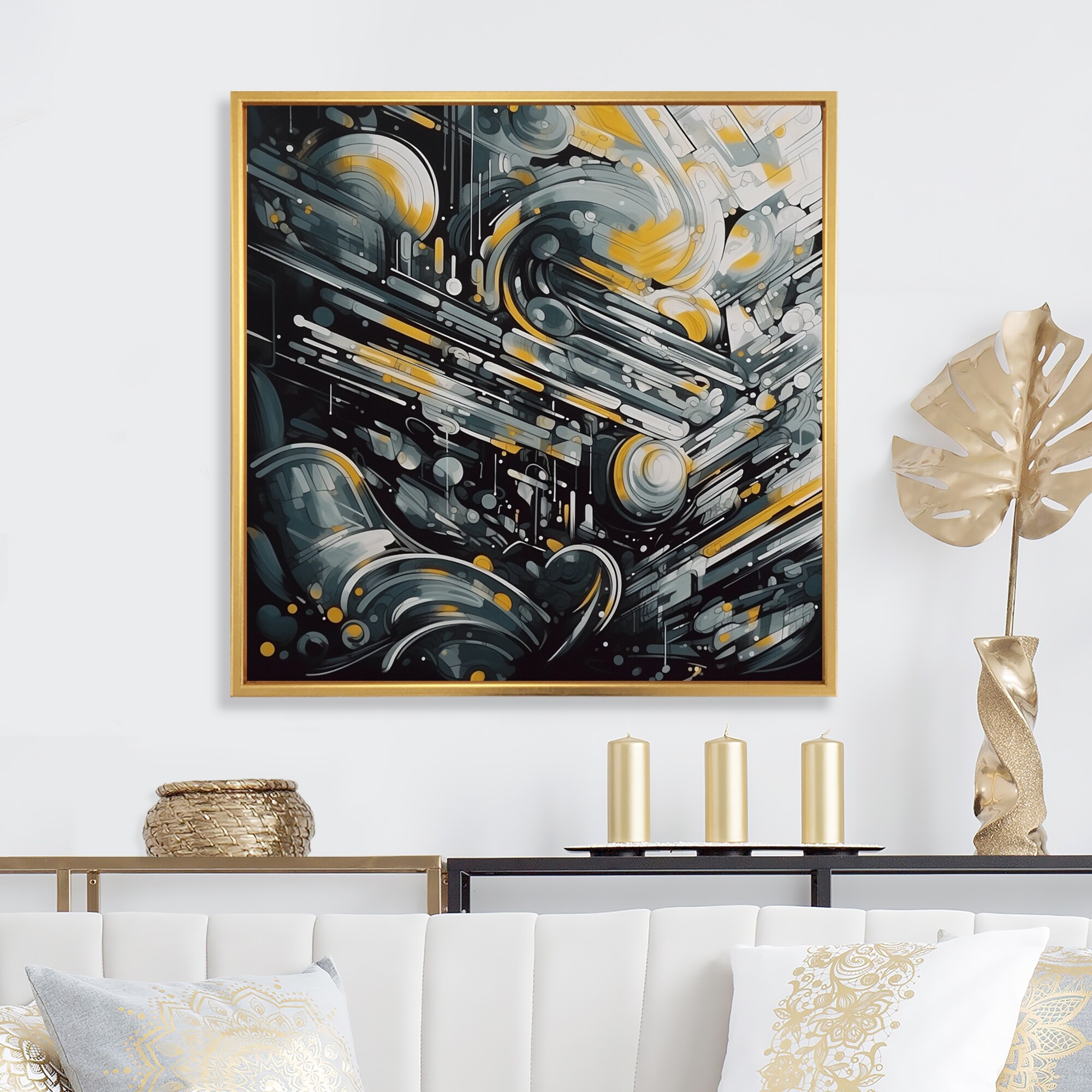 Designart "Grey And Yellow Infinite Geometry I" Modern Geometric Framed Canvas Print
