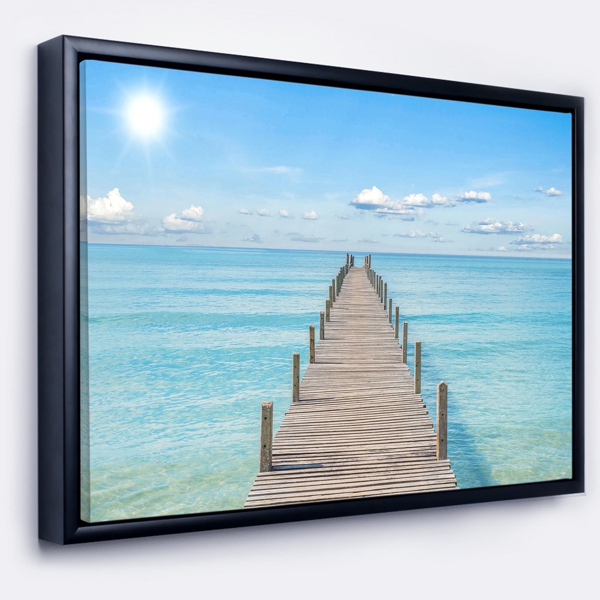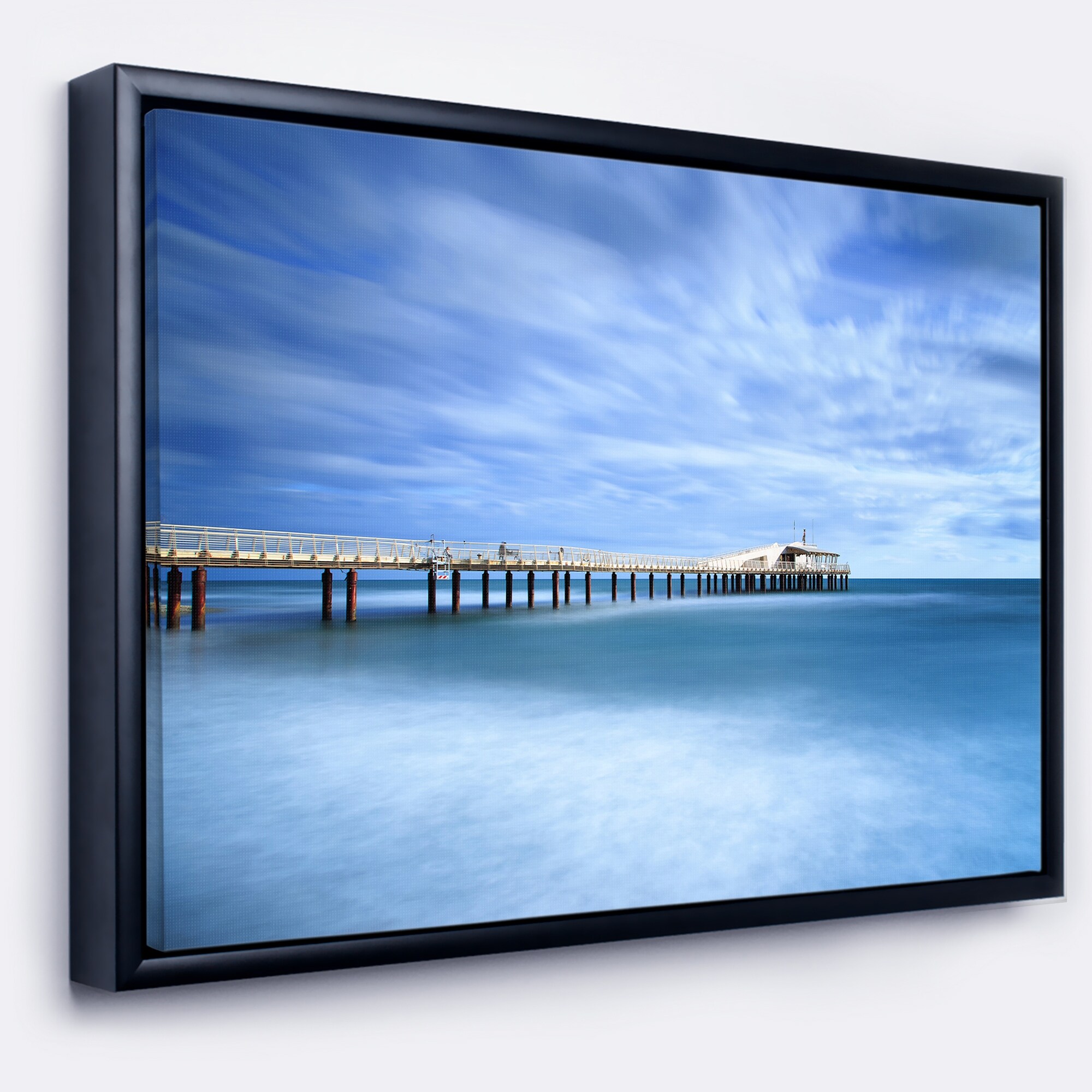 Designart "Pier Infinite to Blue Sea" Seascape Framed Canvas Art Print