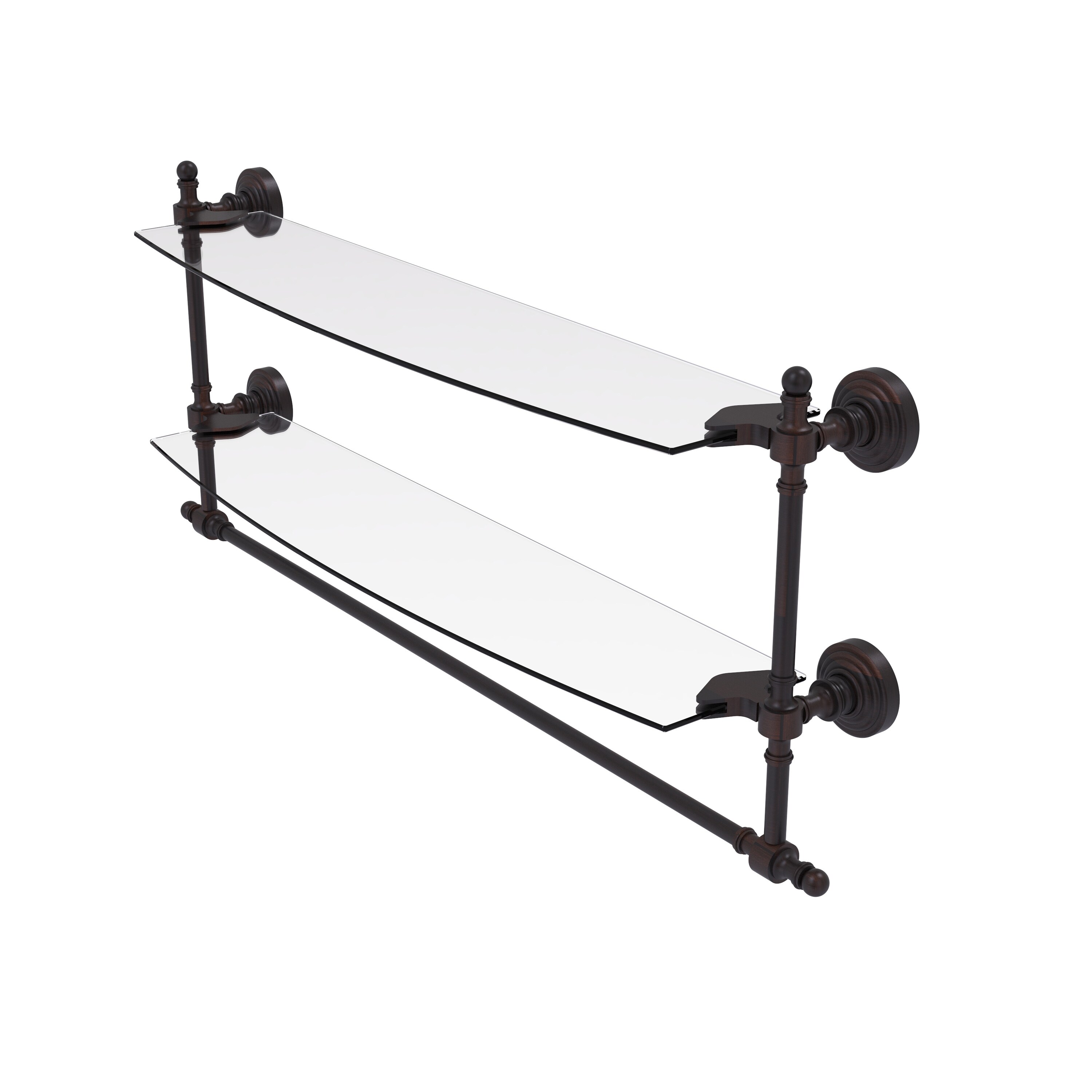 Allied Brass 24 Inch Two Tiered Glass Shelf with Integrated Towel Bar