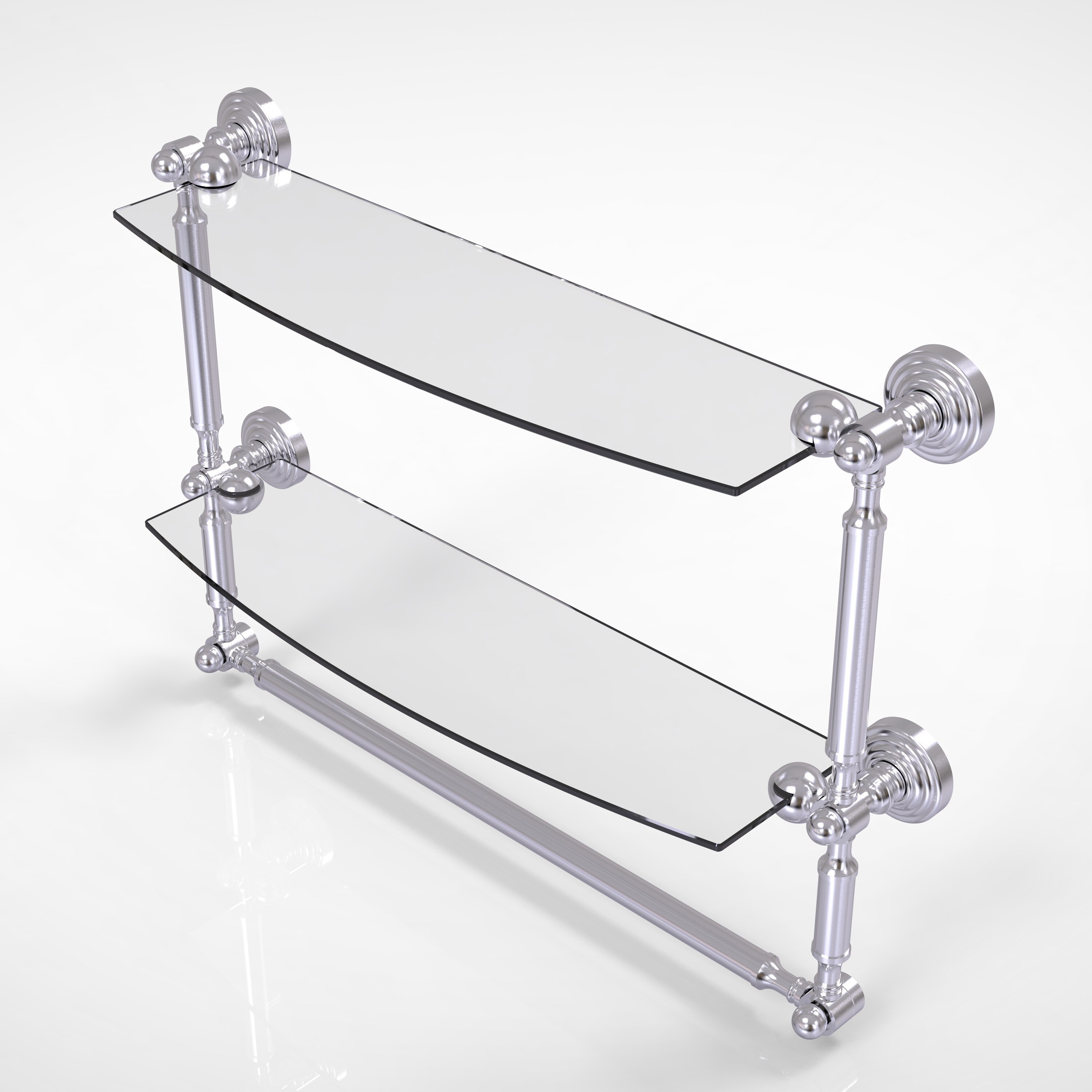Allied Brass 18 Inch Two Tiered Glass Shelf with Integrated Towel Bar