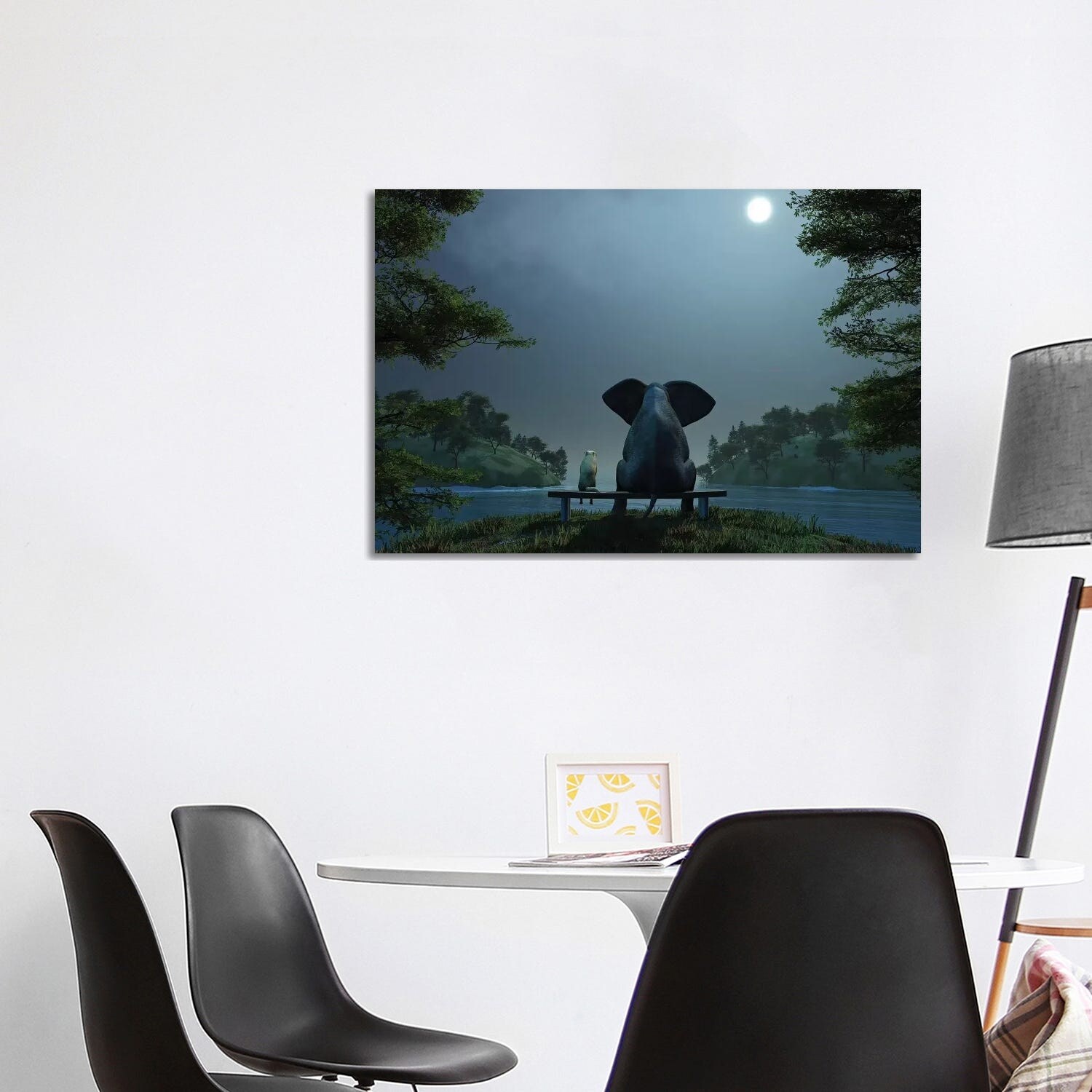 iCanvas "Elephant And Dog Are Sitting on A Meadow on A Moonlit Night" by Mike Kiev