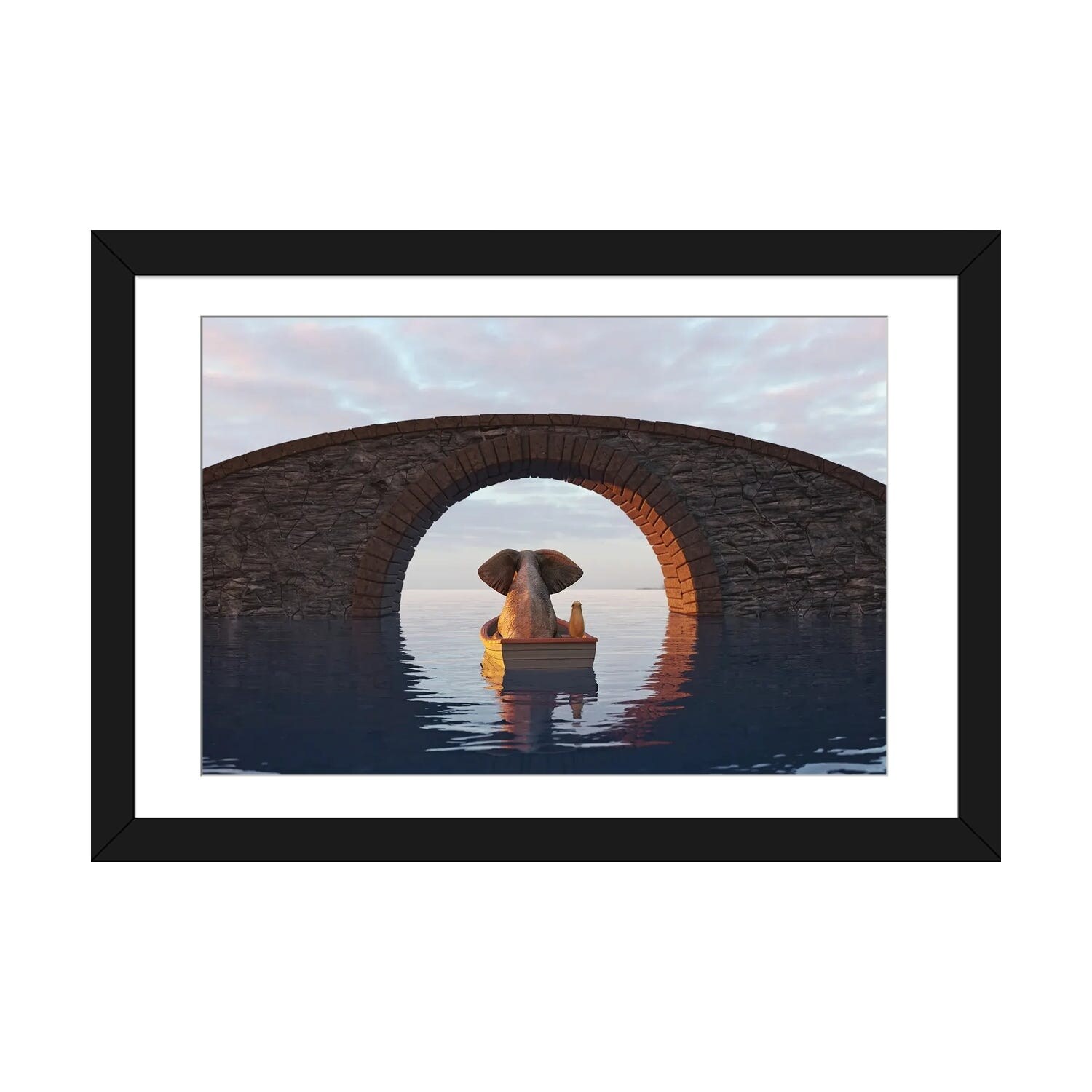 iCanvas "Elephant And Dog Float in A Boat Under the Bridge II" by Mike Kiev PFA