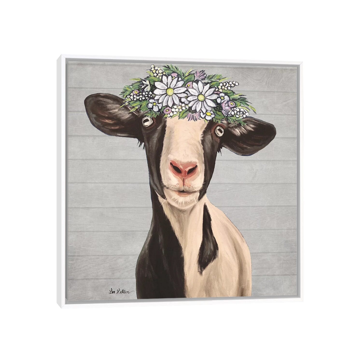 iCanvas "Luna The Goat With Daisies Farmhouse Style" by Hippie Hound Studios Framed Canvas Print
