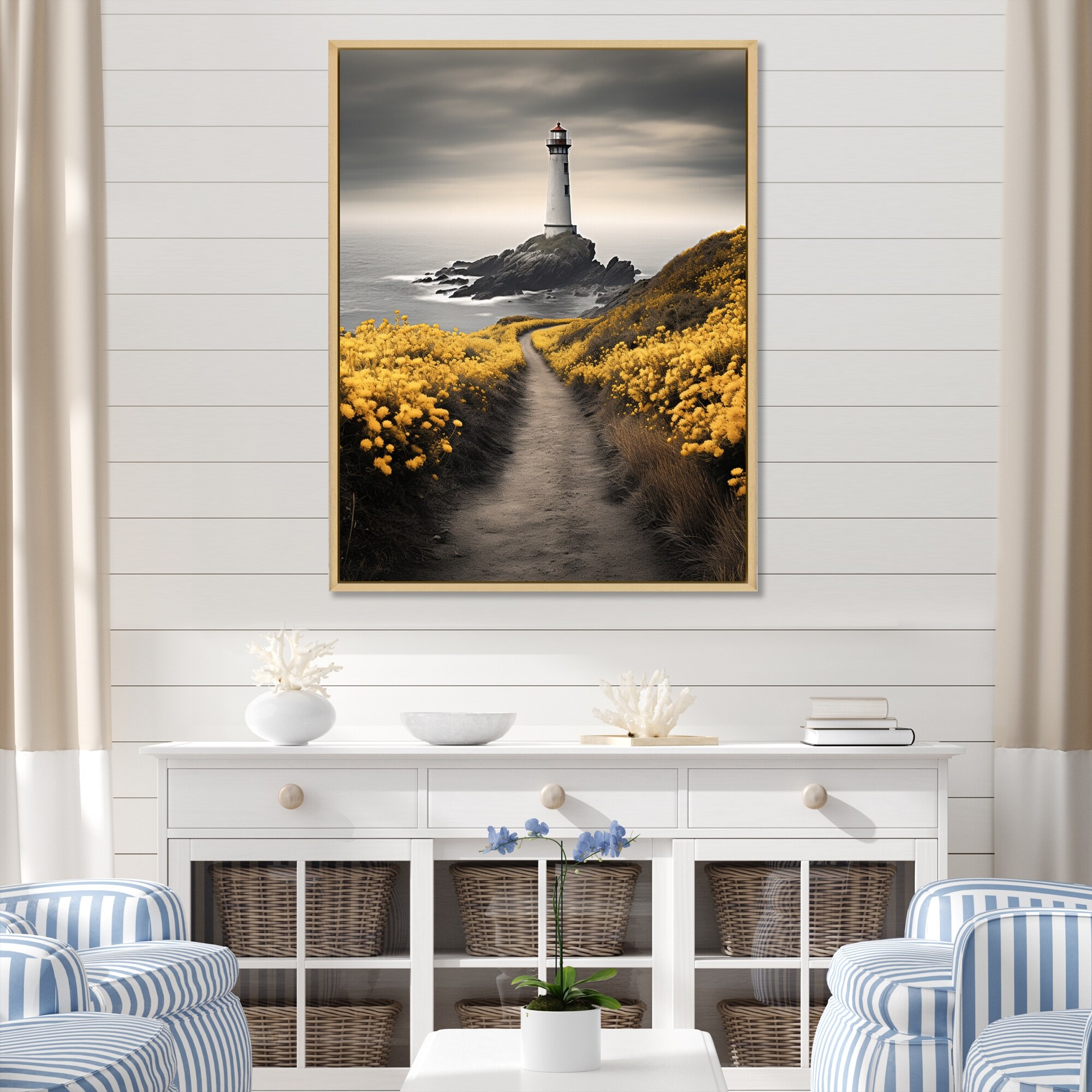 Designart "Coastal Mist" Coastal Ocean Framed Canvas Print