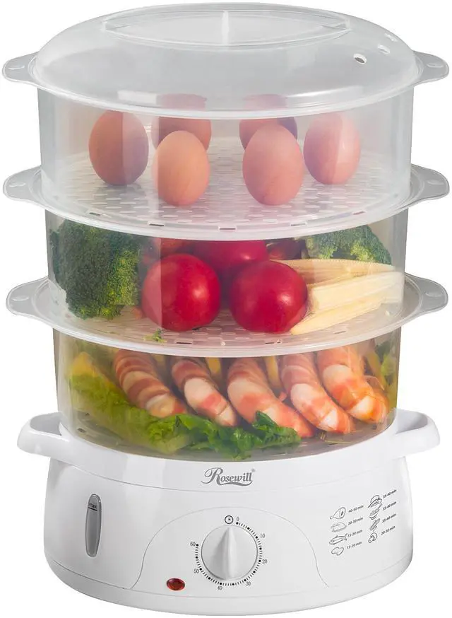 ROSEWILL 4 in 1 Electric Food Steamer, Steamer, Baby food maker, Rice cooker and Sterilizer, 800W turbo steam fast heating, 3 Tier stackable baskets,9.5Qt