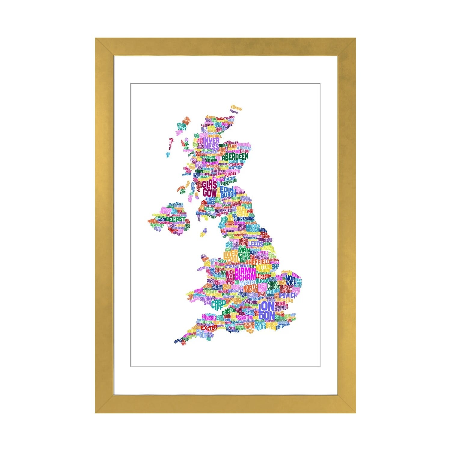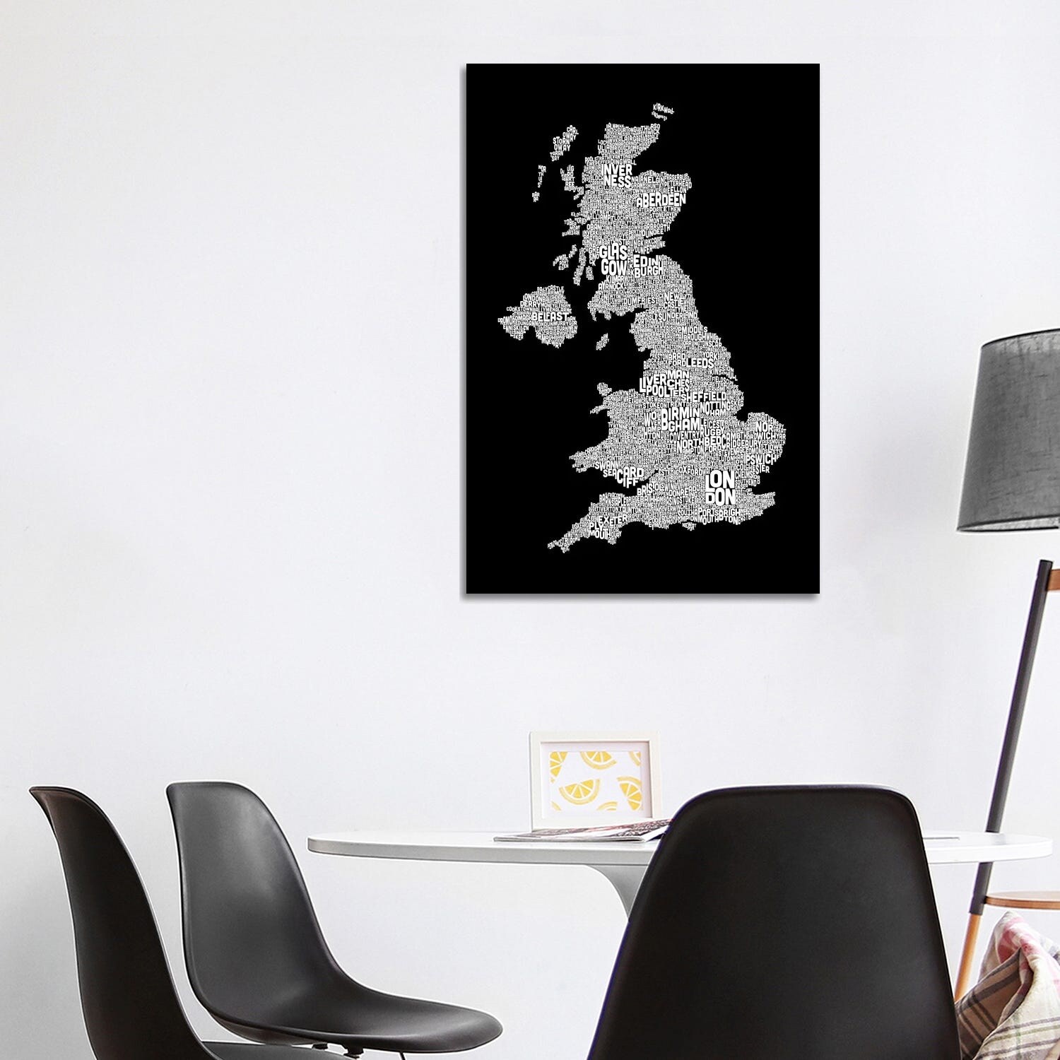 iCanvas "Great Britain Cities Text Map II" by Michael Tompsett Canvas Print