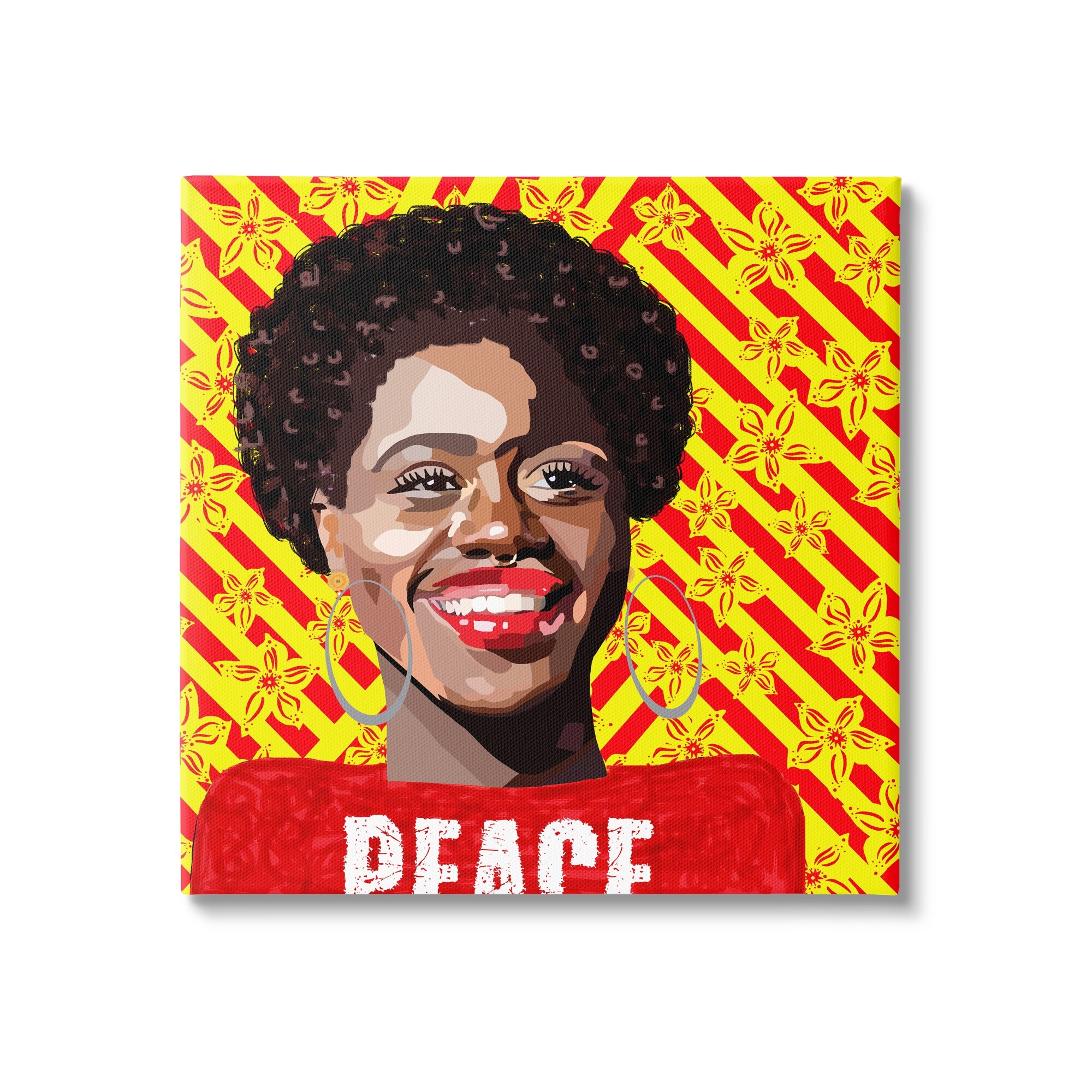 Stupell Peace Text Smiling Woman Floral Red Stripes Canvas Wall Art