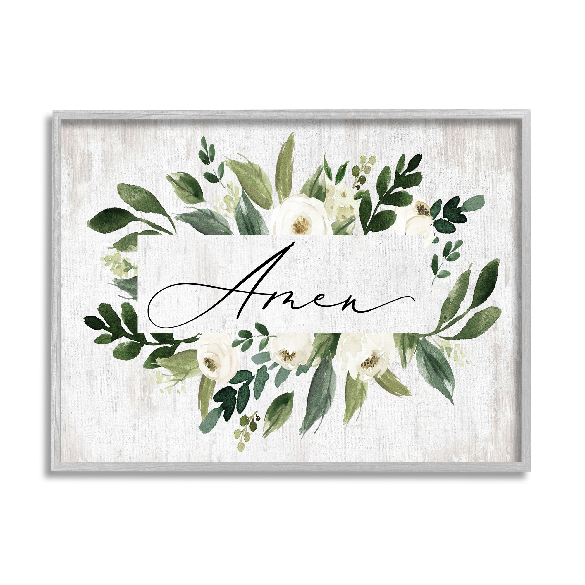 Stupell Industries Amen Text Green Botanical Foliage White Florals Distressed Framed Wall Art