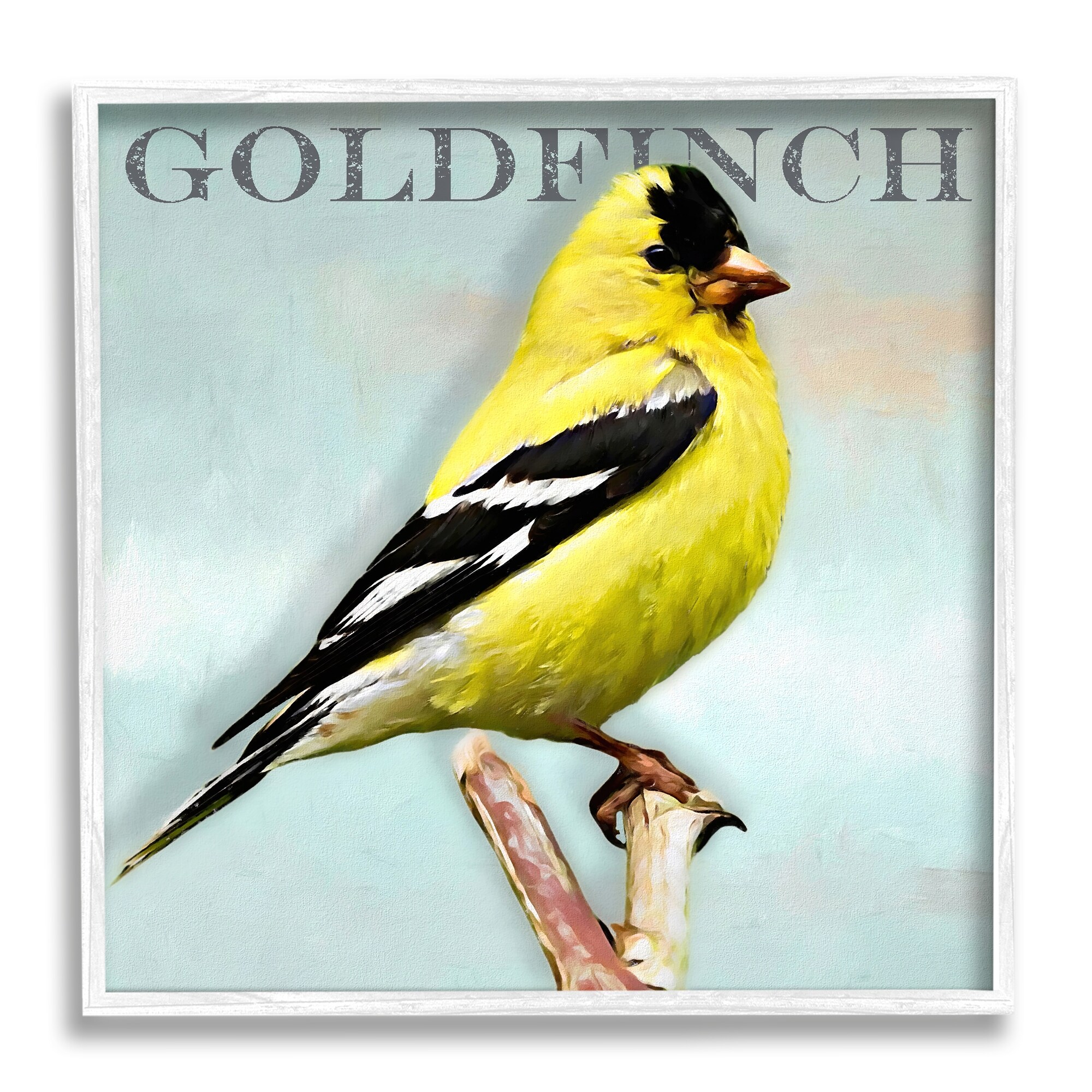 Stupell Yellow Goldfinch Bird Portrait Rustic Text Typography Framed Wall Art - Blue