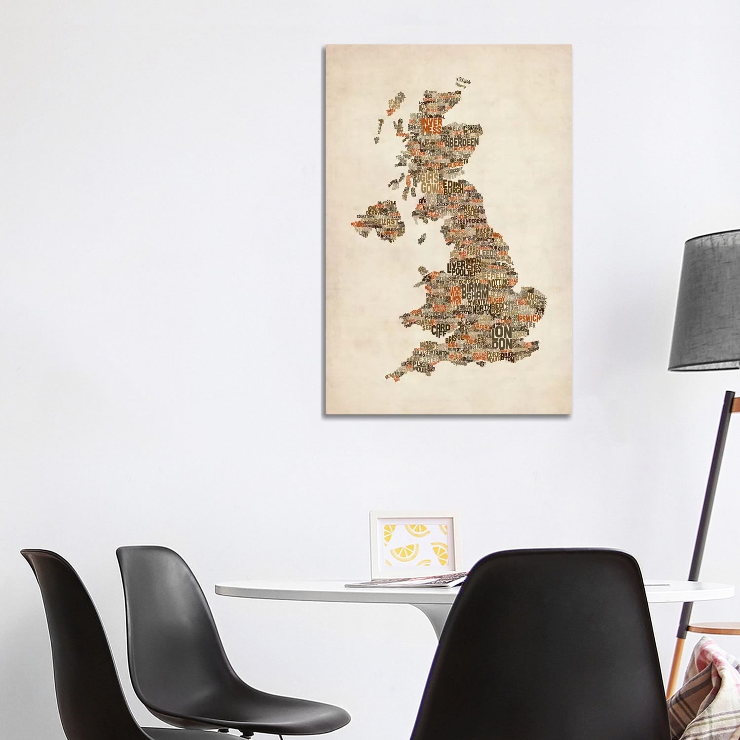 iCanvas "Great Britain UK City Text Map II" by Michael Tompsett Canvas Print