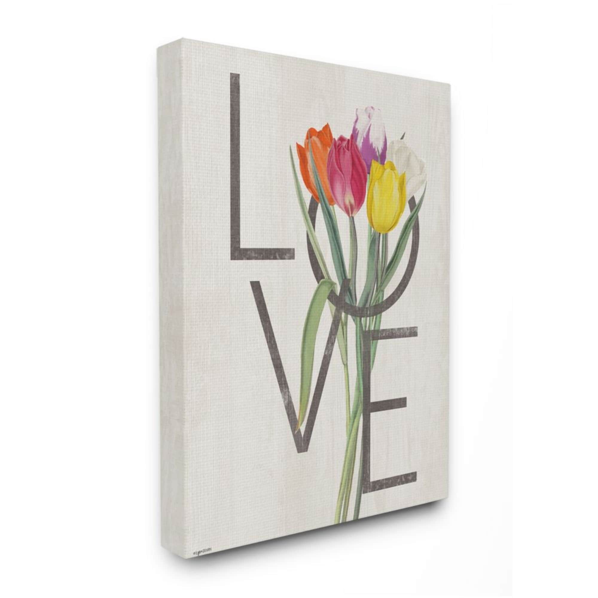 Stupell Industries Rustic Love Text Colorful Farm Tulip Florals Canvas Wall Art