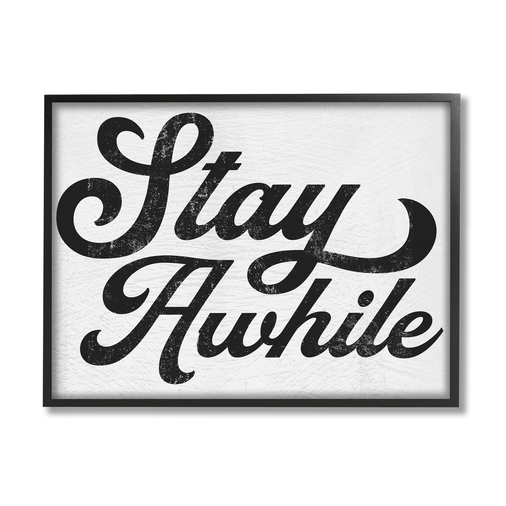 Stupell Industries Stay Awhile Retro Text Casual Vintage Phrase Framed Wall Art, Design by Daphne Polselli