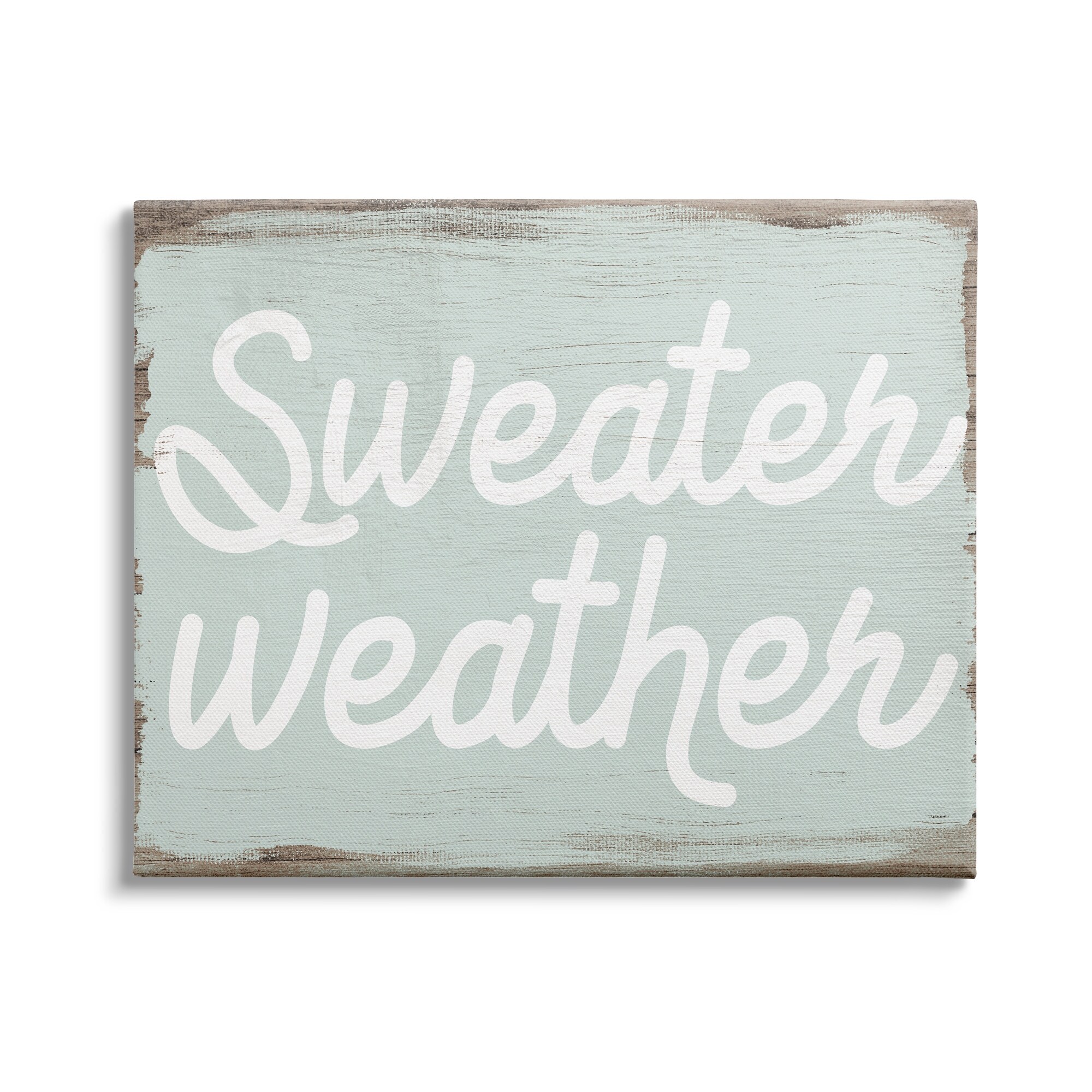 Stupell Sweater Weather Phrase Minimal Text Rustic Grain Pattern Canvas Wall Art - Blue