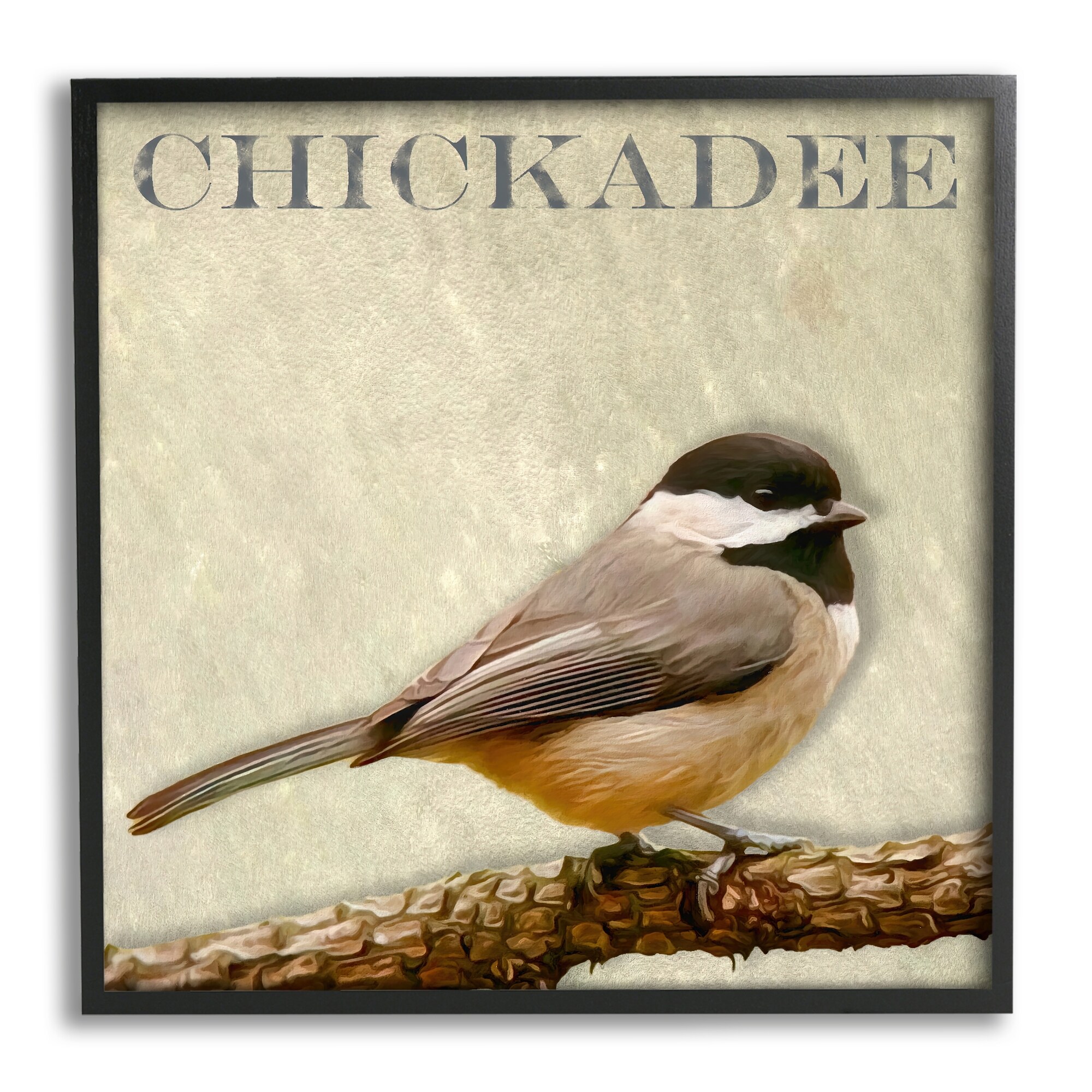 Stupell Chickadee Bird Tree Branch Text Illustration Framed Wall Art - Tan