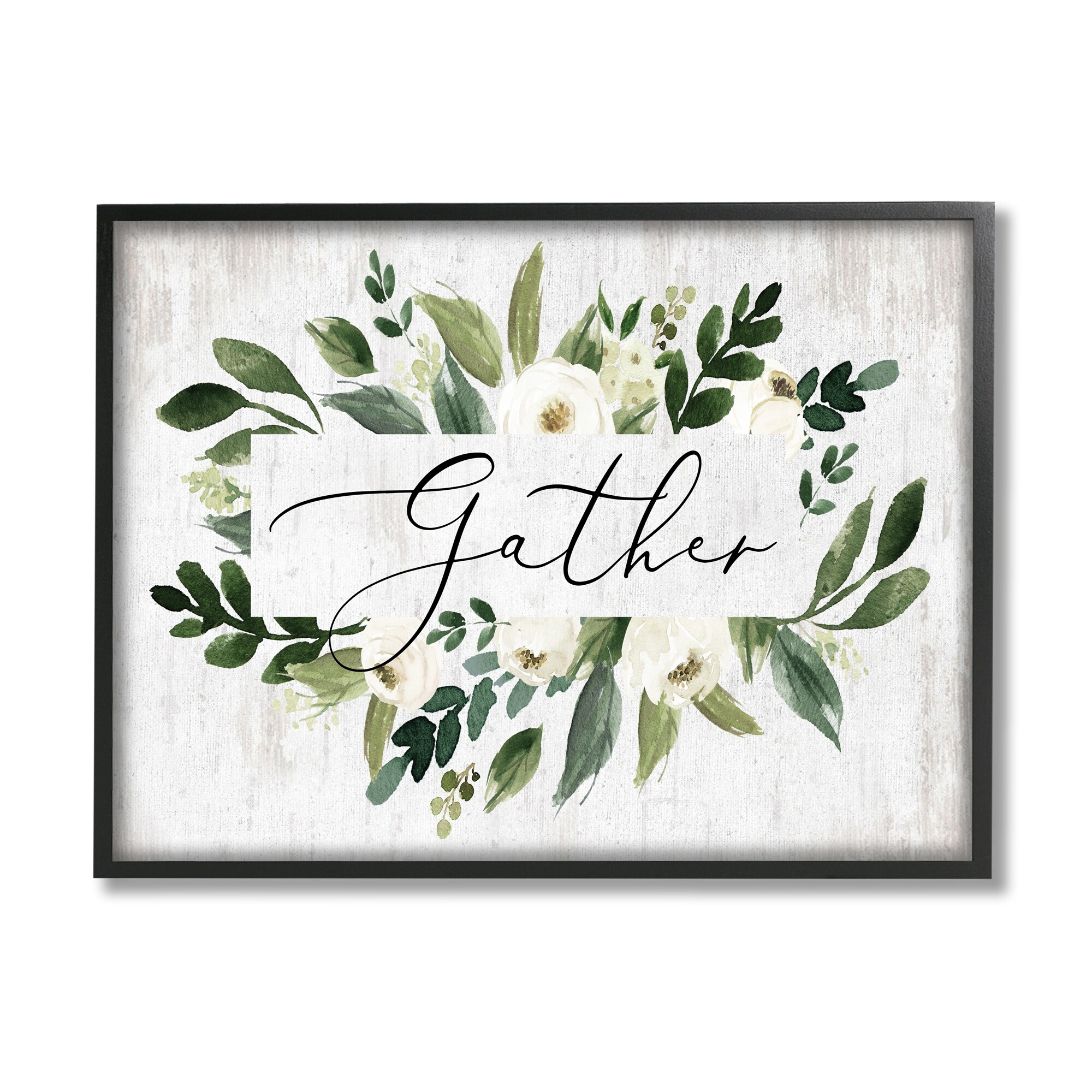 Stupell Industries Gather Text White Flower Green Botanicals Distressed Pattern Framed Wall Art