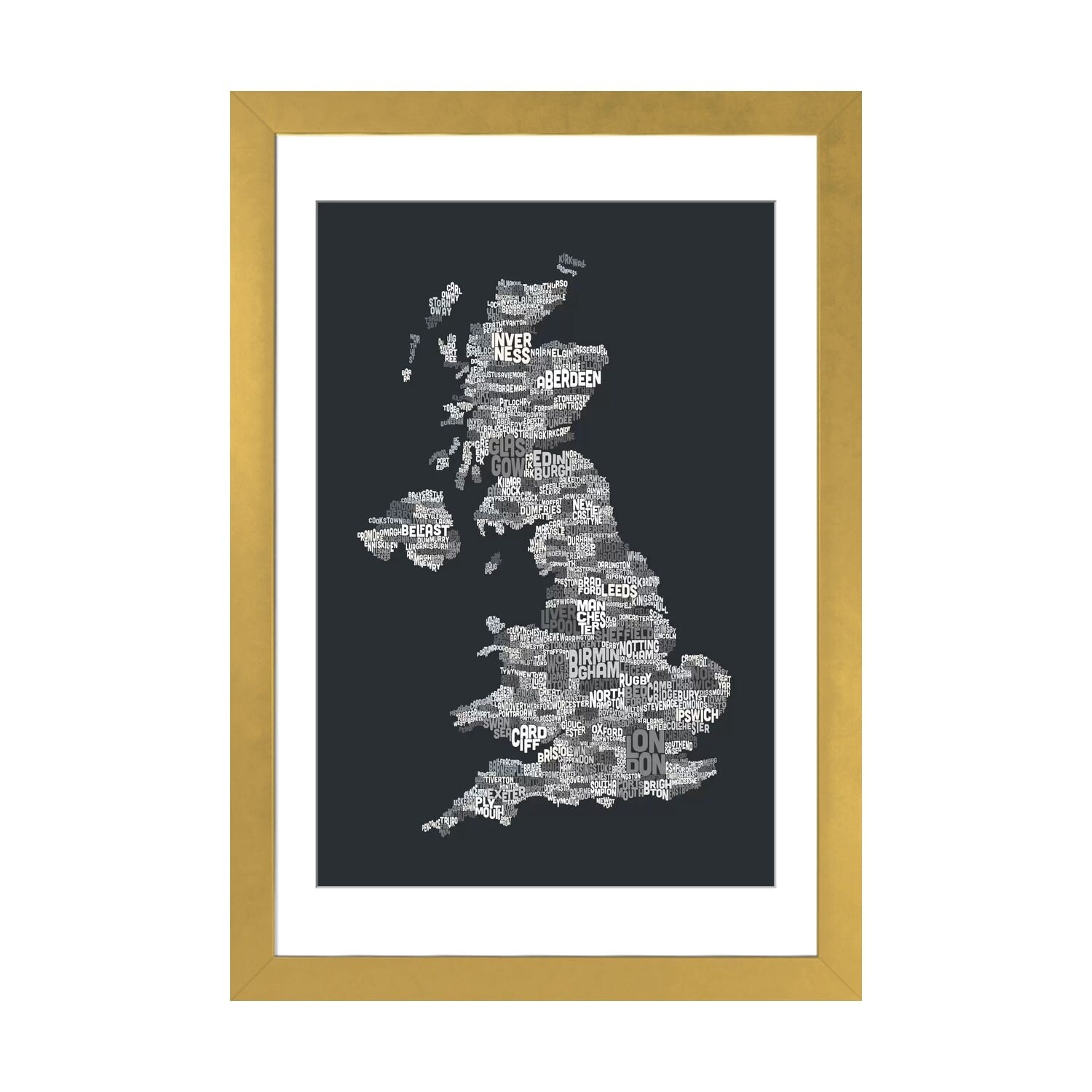 iCanvas "Great Britain UK City Text Map (Gray)" by Michael Tompsett