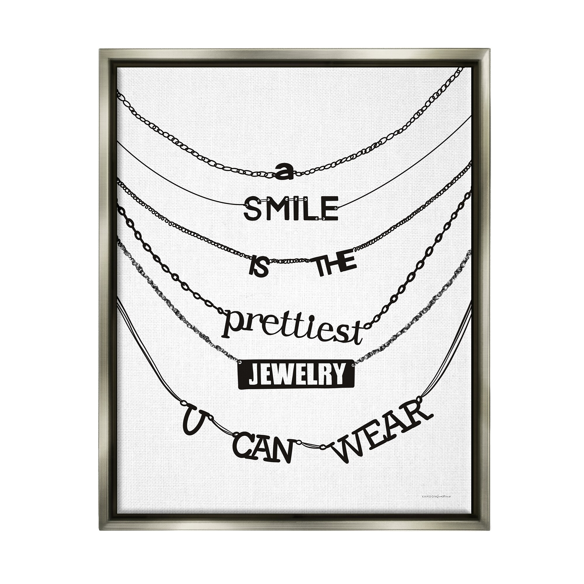 Stupell Industries Smile Glam Quote Chic Necklace Varied Text Design Floater Frame, Design by Kamdon Kreations