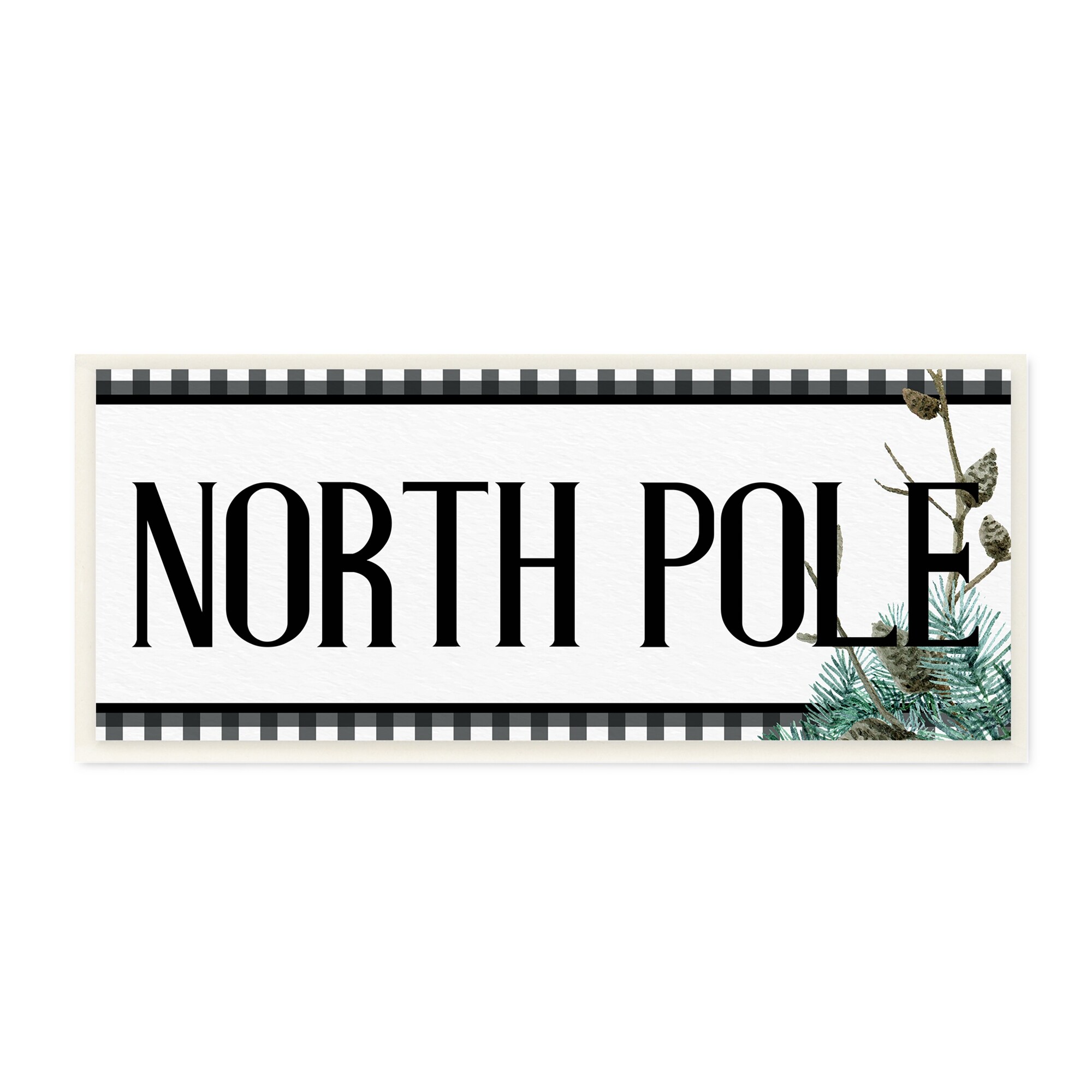 Stupell North Pole Typography Black Plaid Winter Pinecone Foliage Wood Wall Art, 17 x 7 - White