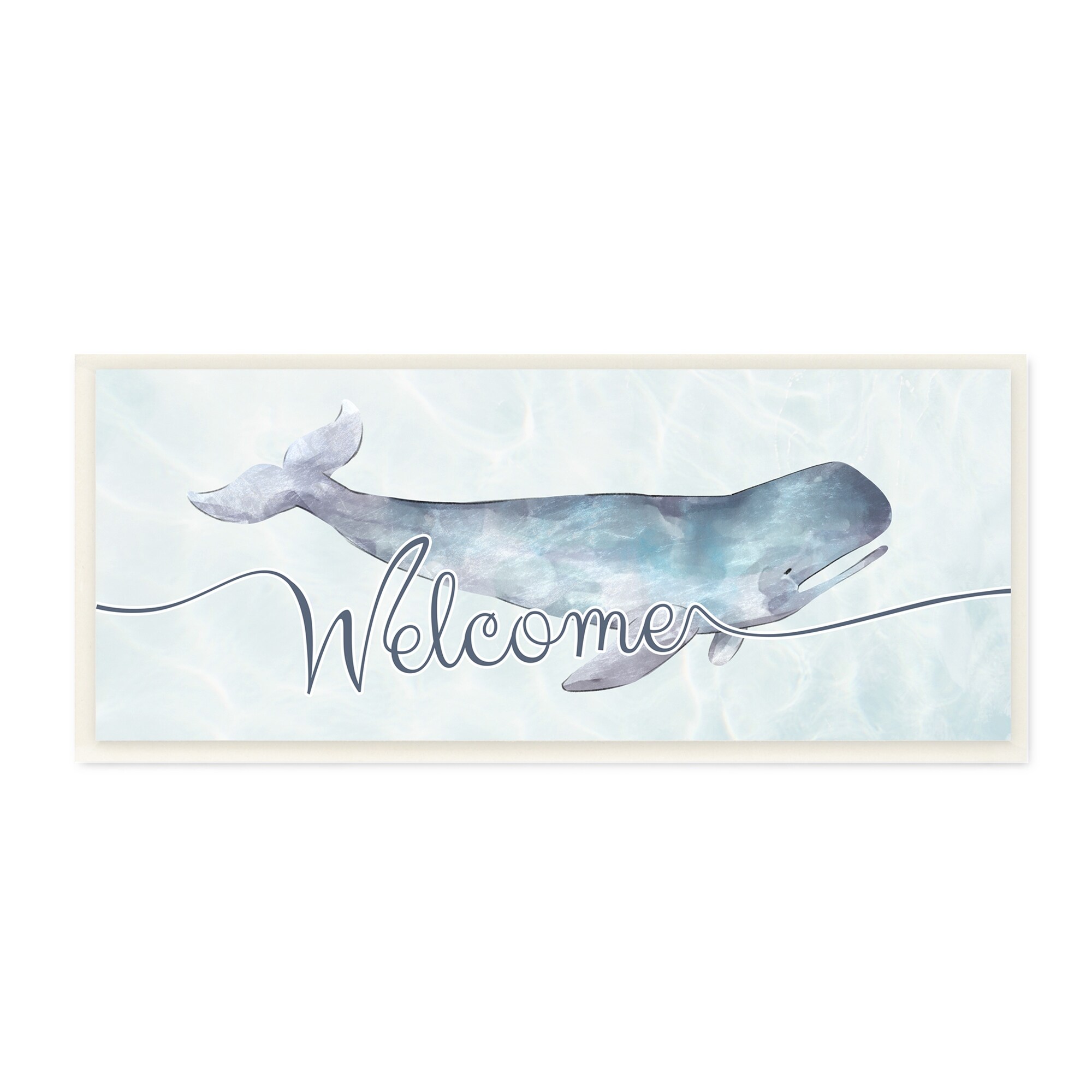 Stupell Industries Welcome Greeting Soft Tranquil Whale Ocean Animal Wood Wall Art, 17 x 7 - Blue
