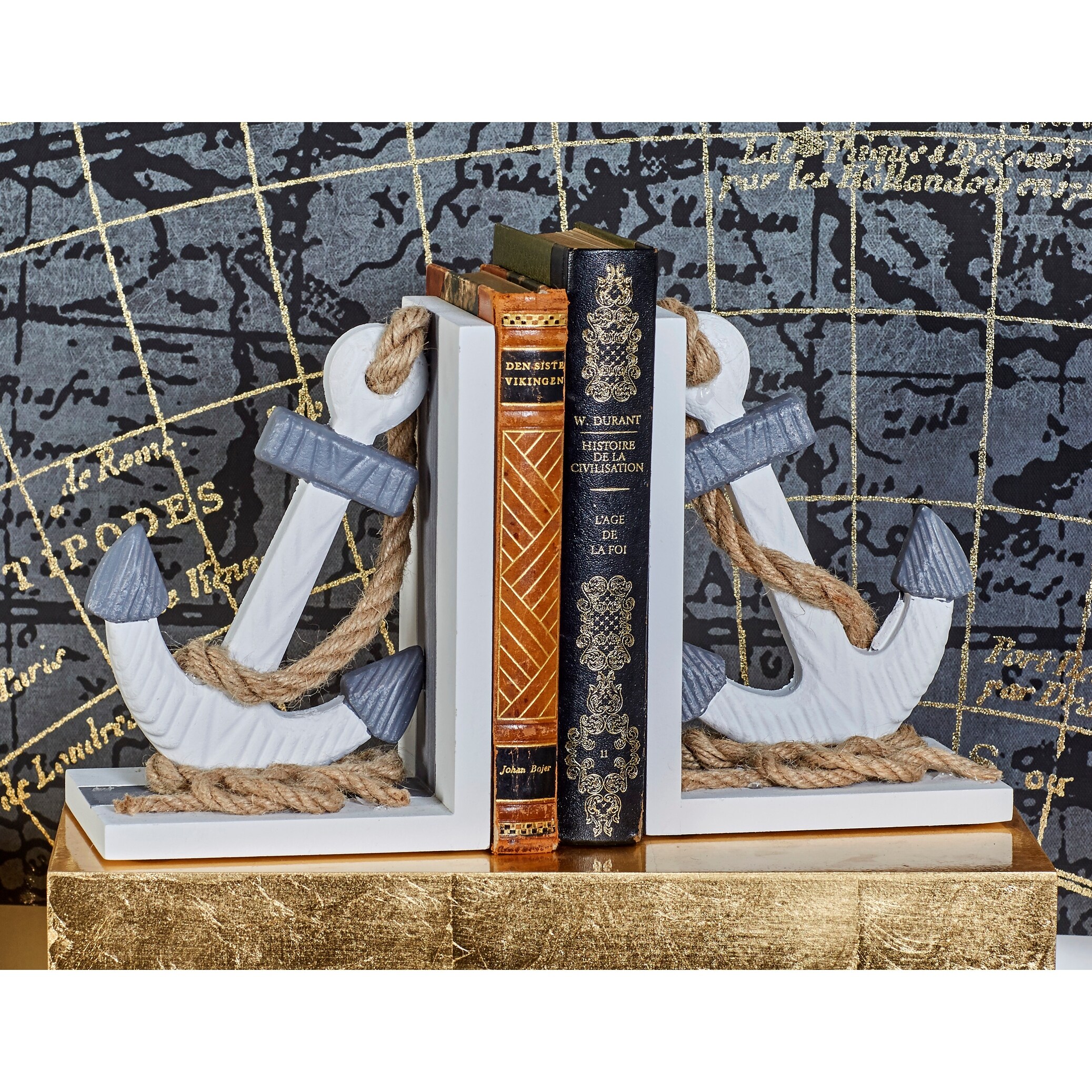 White MDF Coastal Bookends Shapes & Symbols (Set of 2) - 5 x 4 x 7