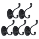 5pcs Dual Robe Hooks Zinc Alloy Bathroom Hooks Towel Hanger w Screws - Black - 2.4" x 1.7" x 2.1" (L*W*H)