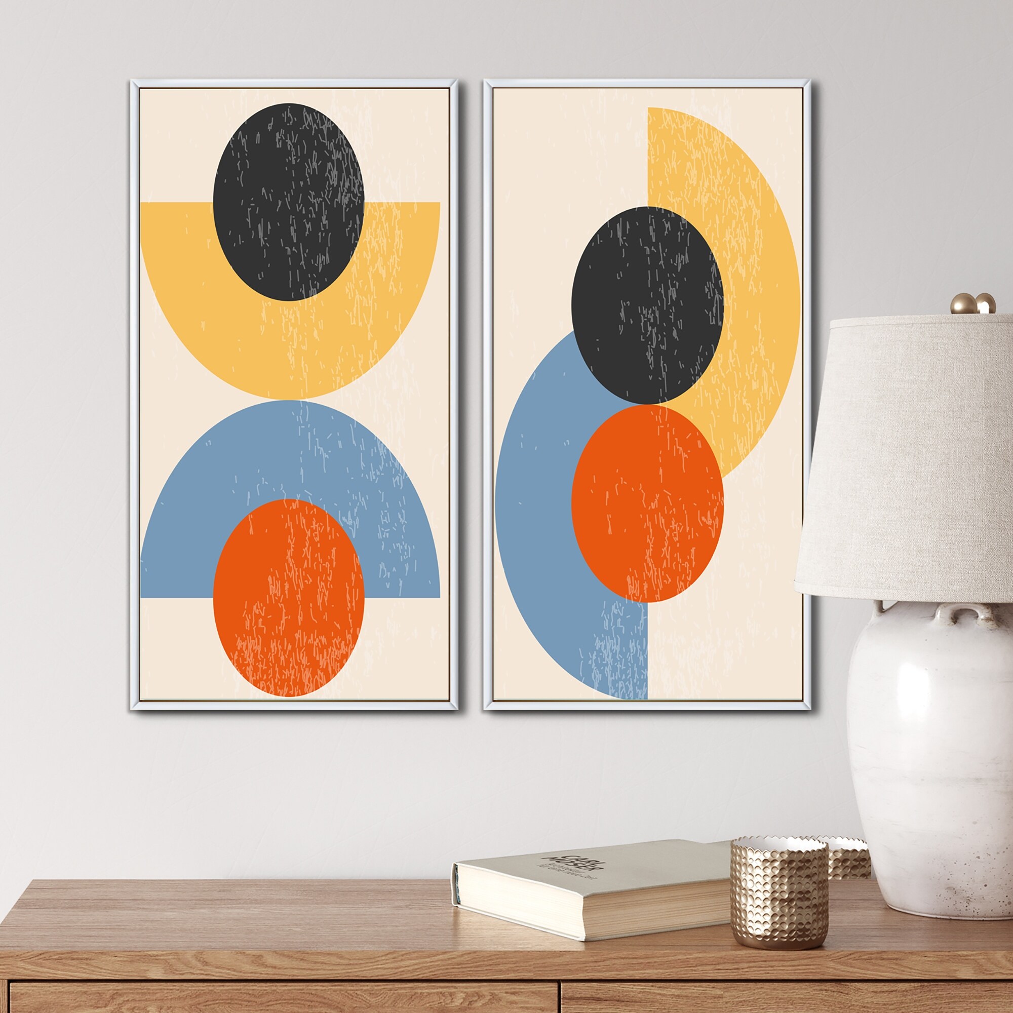 Designart "Minimal Abstract Shapes in Retro Colors IV" Geometric Framed Art Set of 2 Pieces