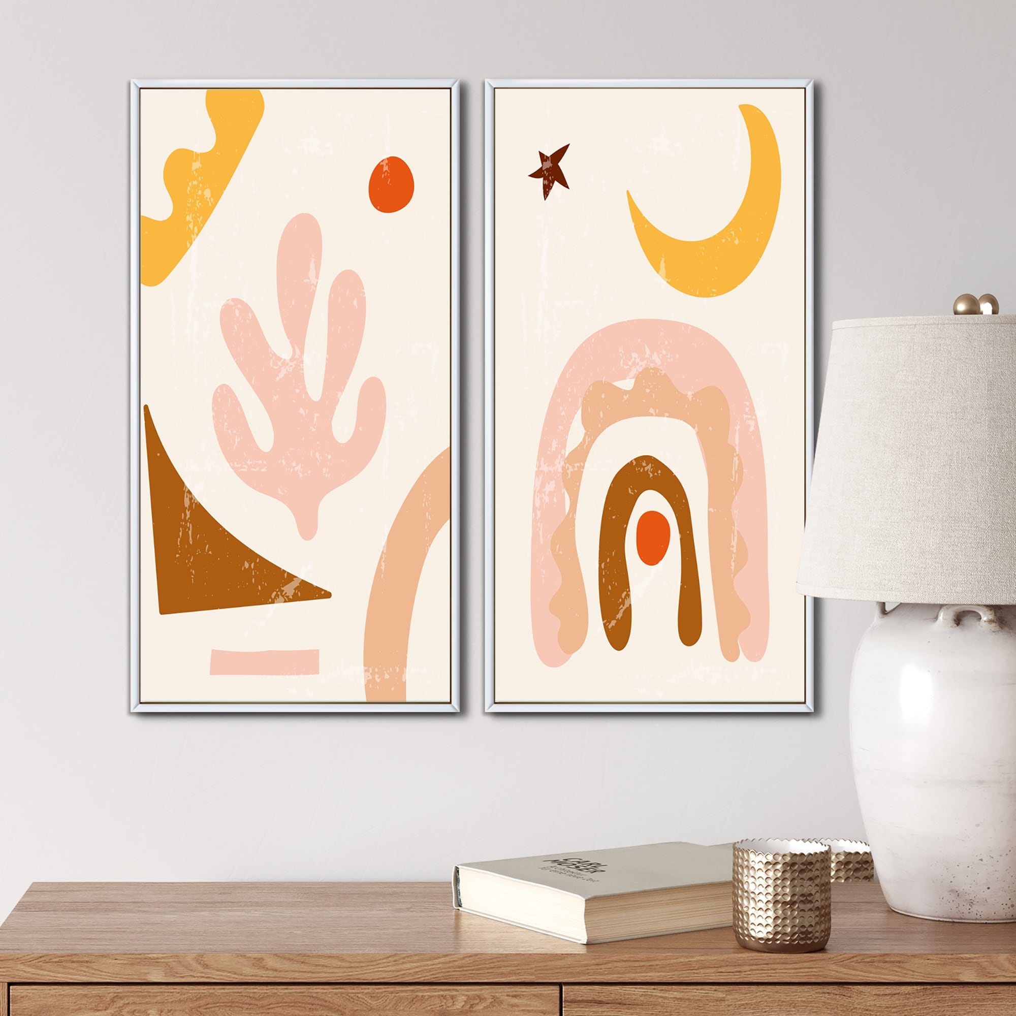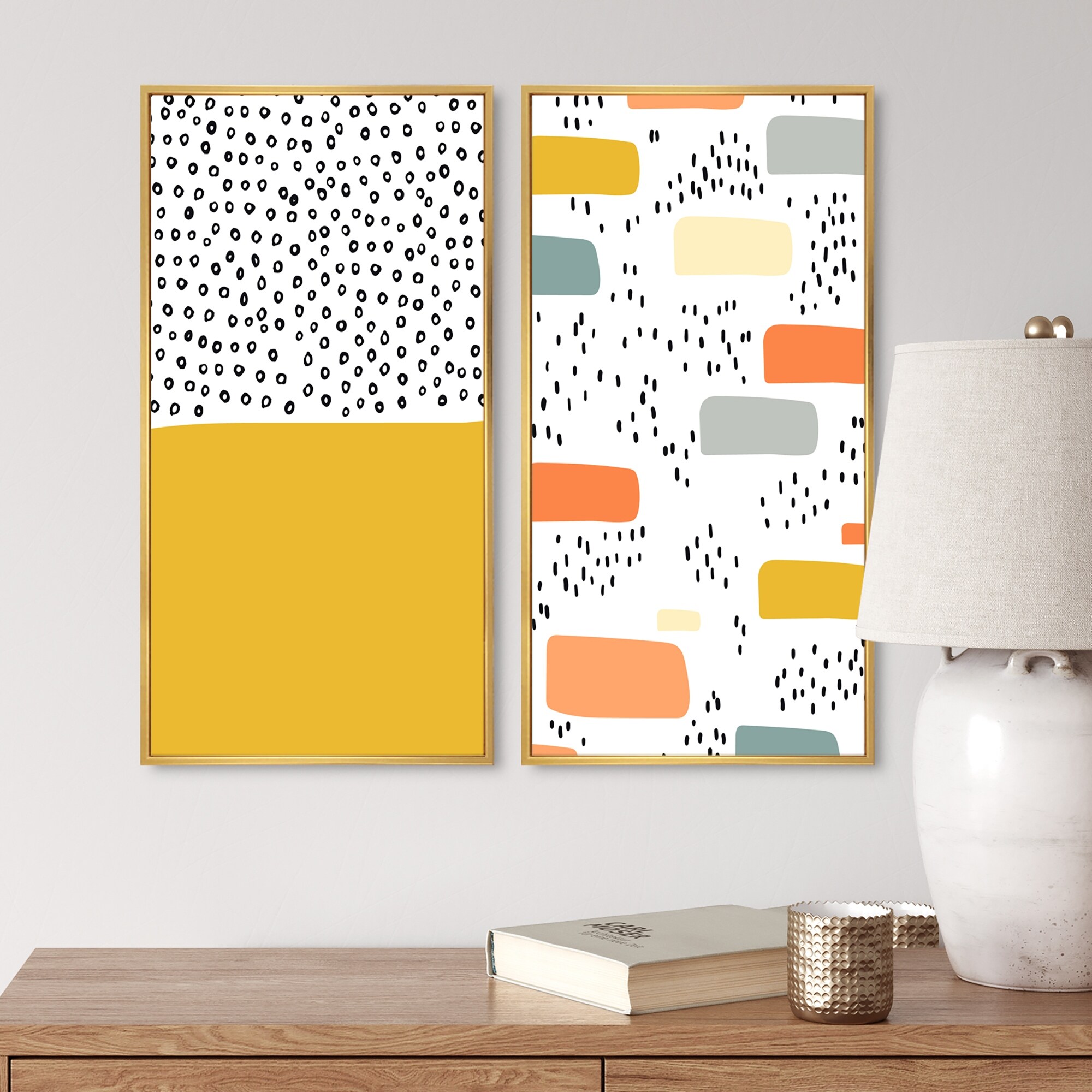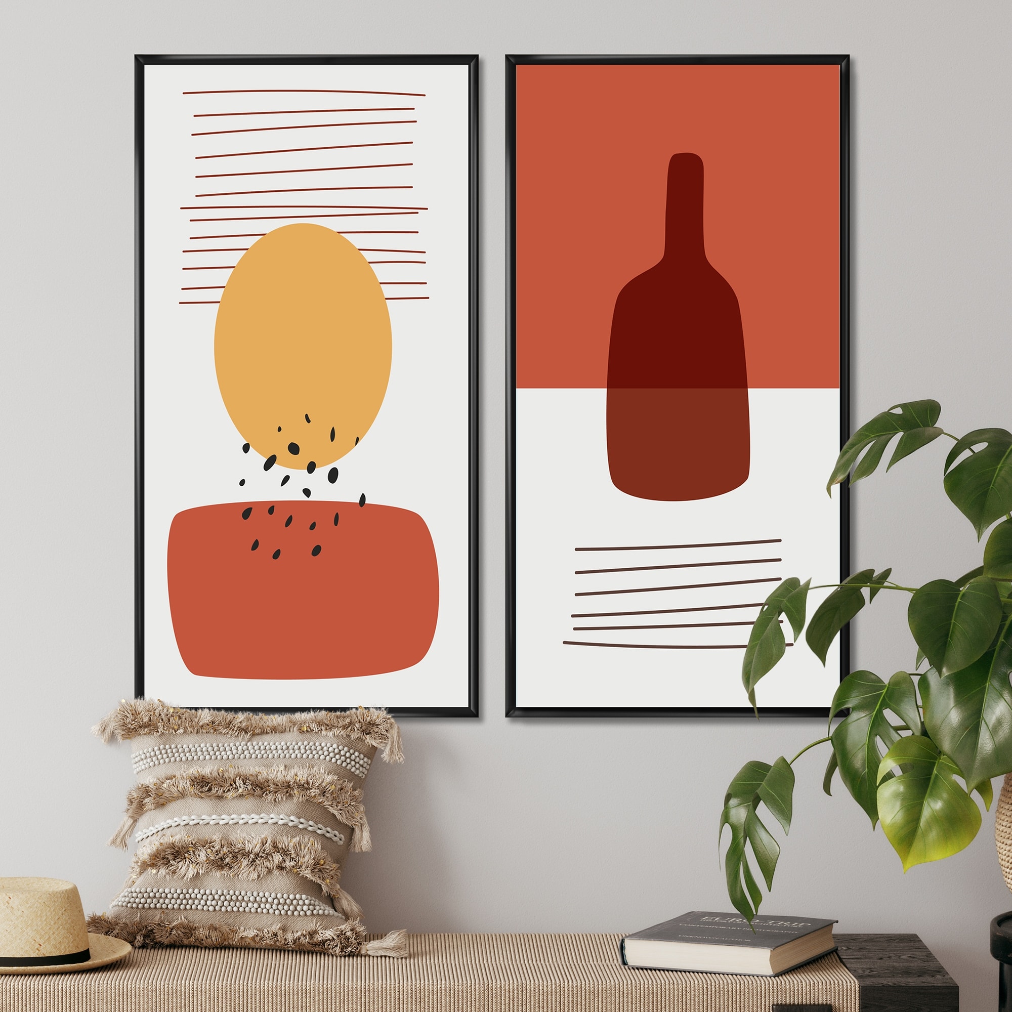 Designart "Minimalistic Abstract Designs in Retro Colors V" Abstract Framed Art Set of 2 Pieces