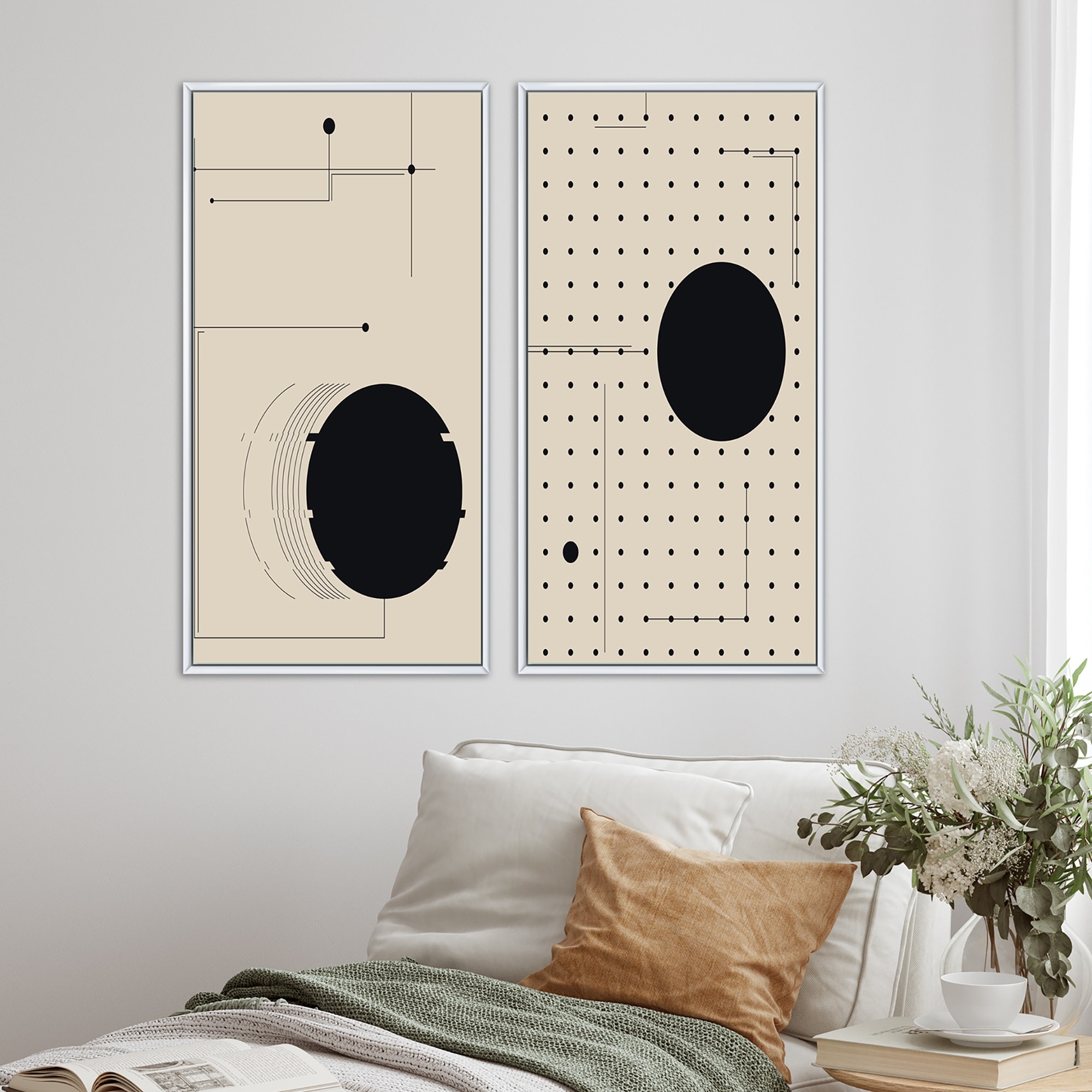 Designart "Minimal 20S Bauhaus Geometric II" Geometric Framed Art Set of 2 Pieces