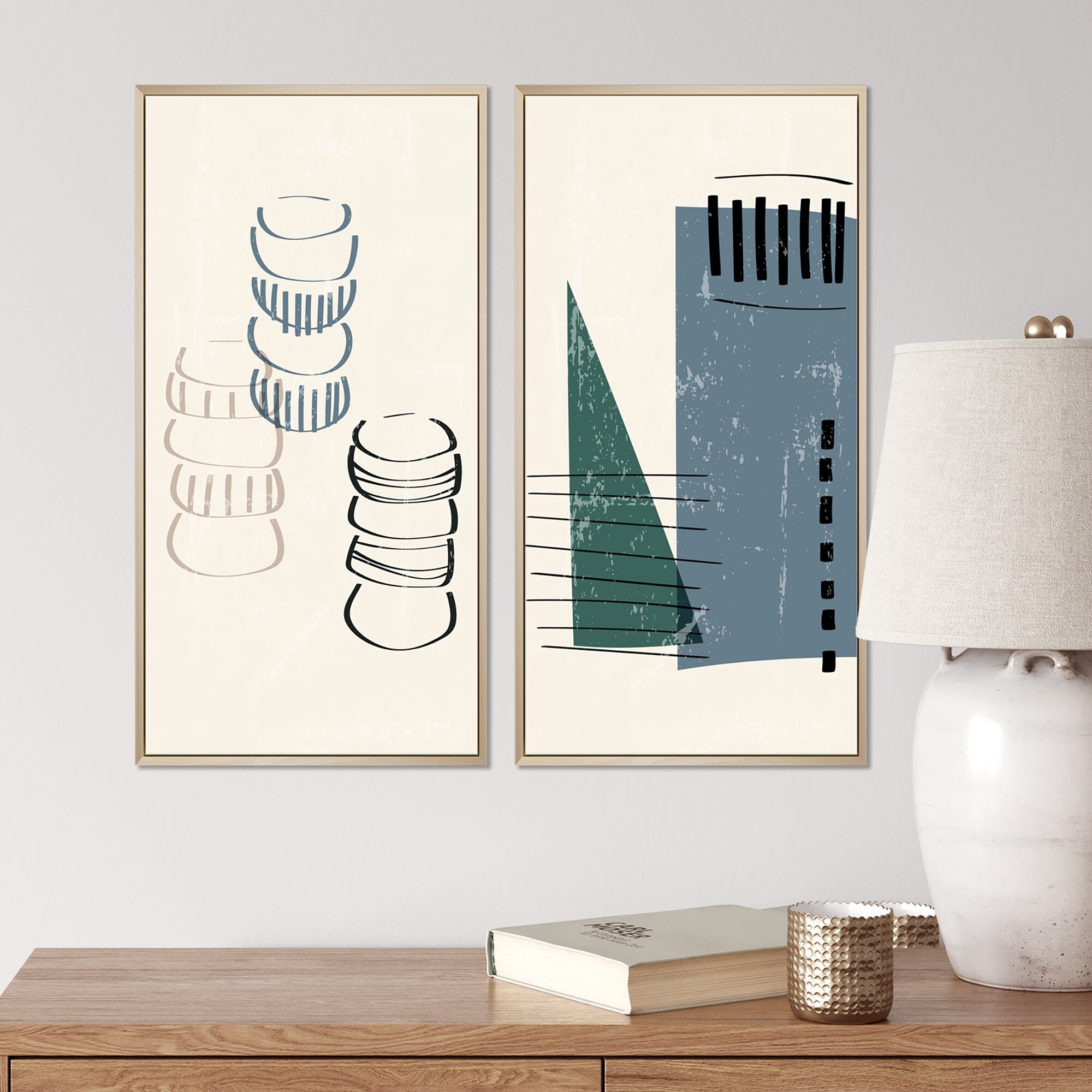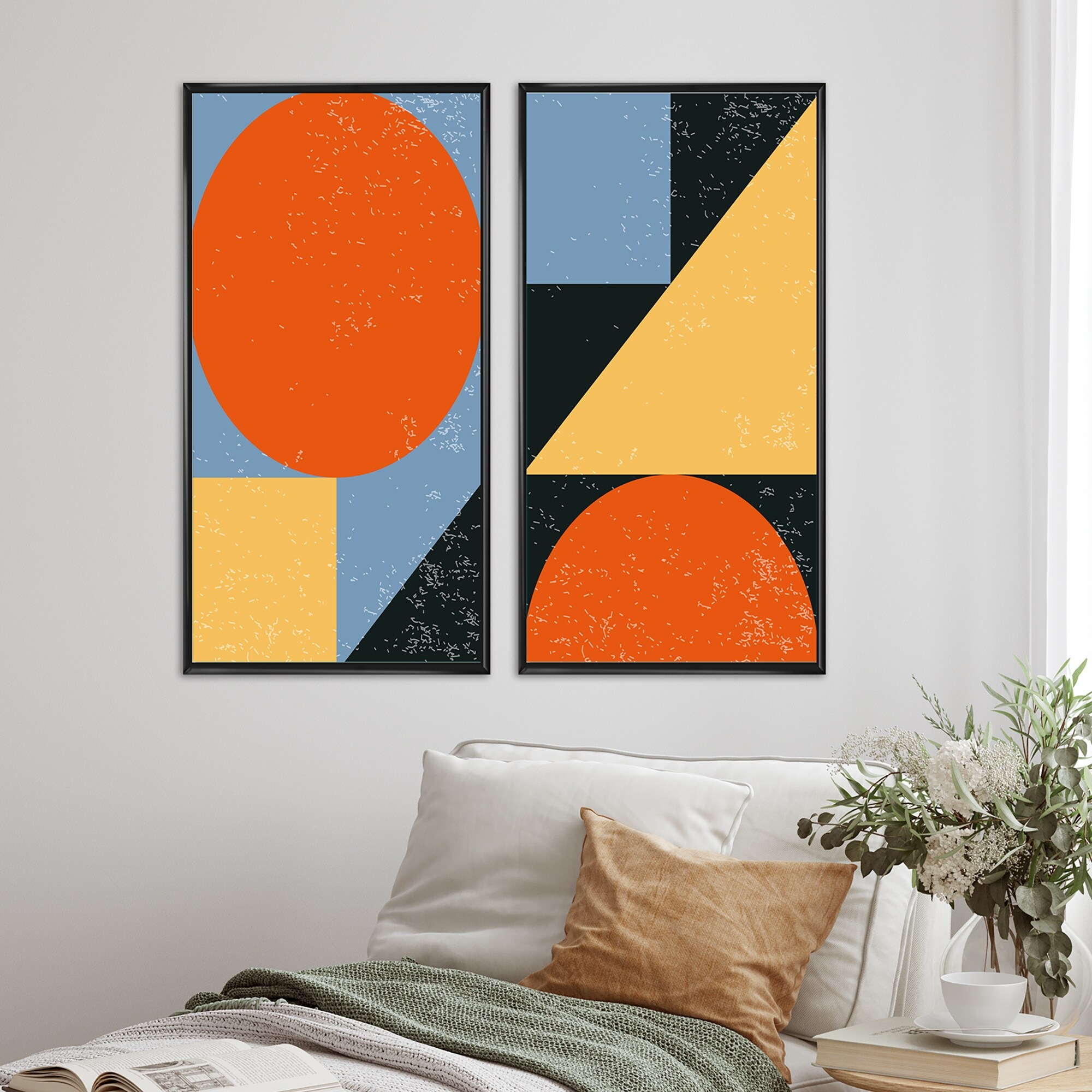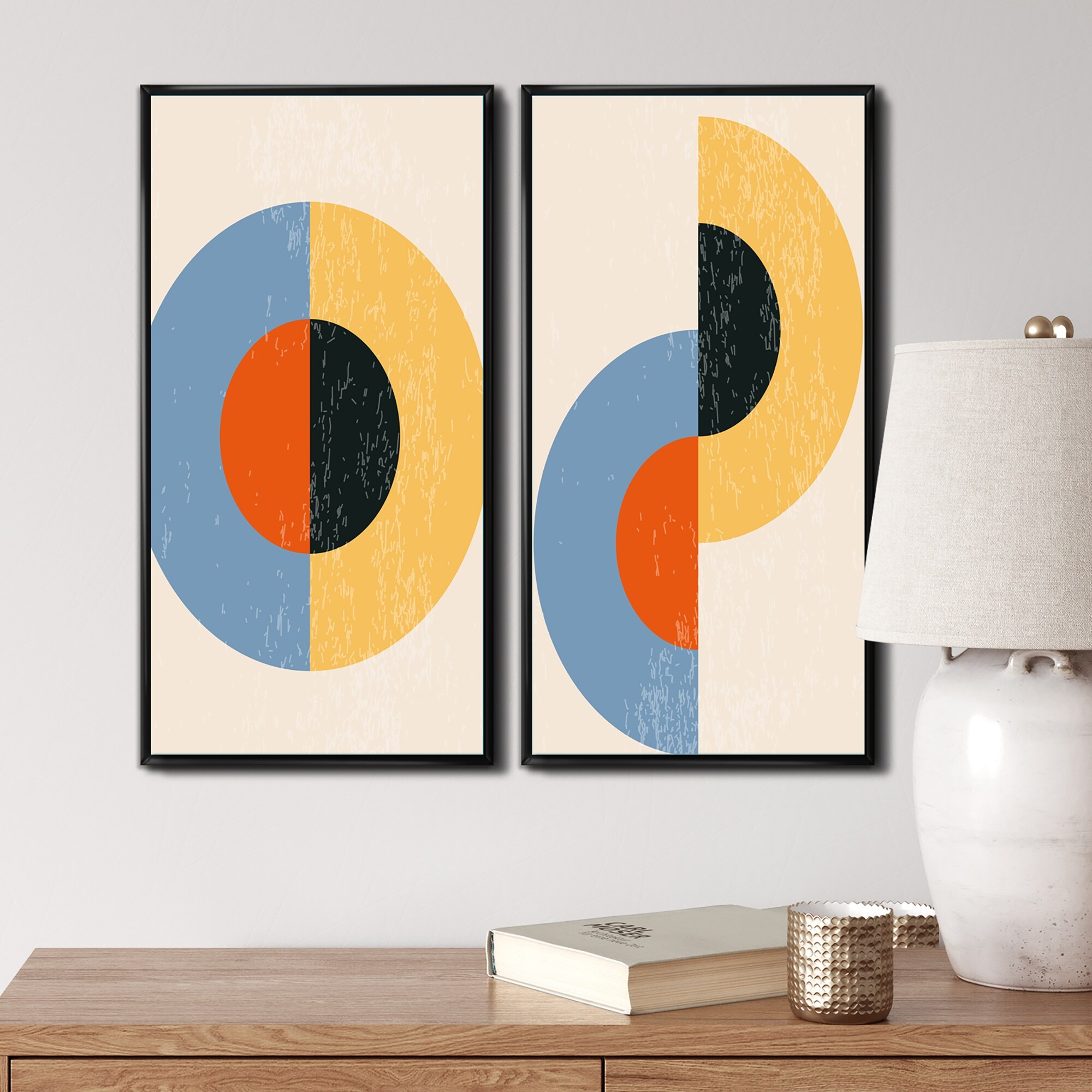 Designart "Minimalistic Retro Color Geometrics IV" Geometric Framed Art Set of 2 Pieces