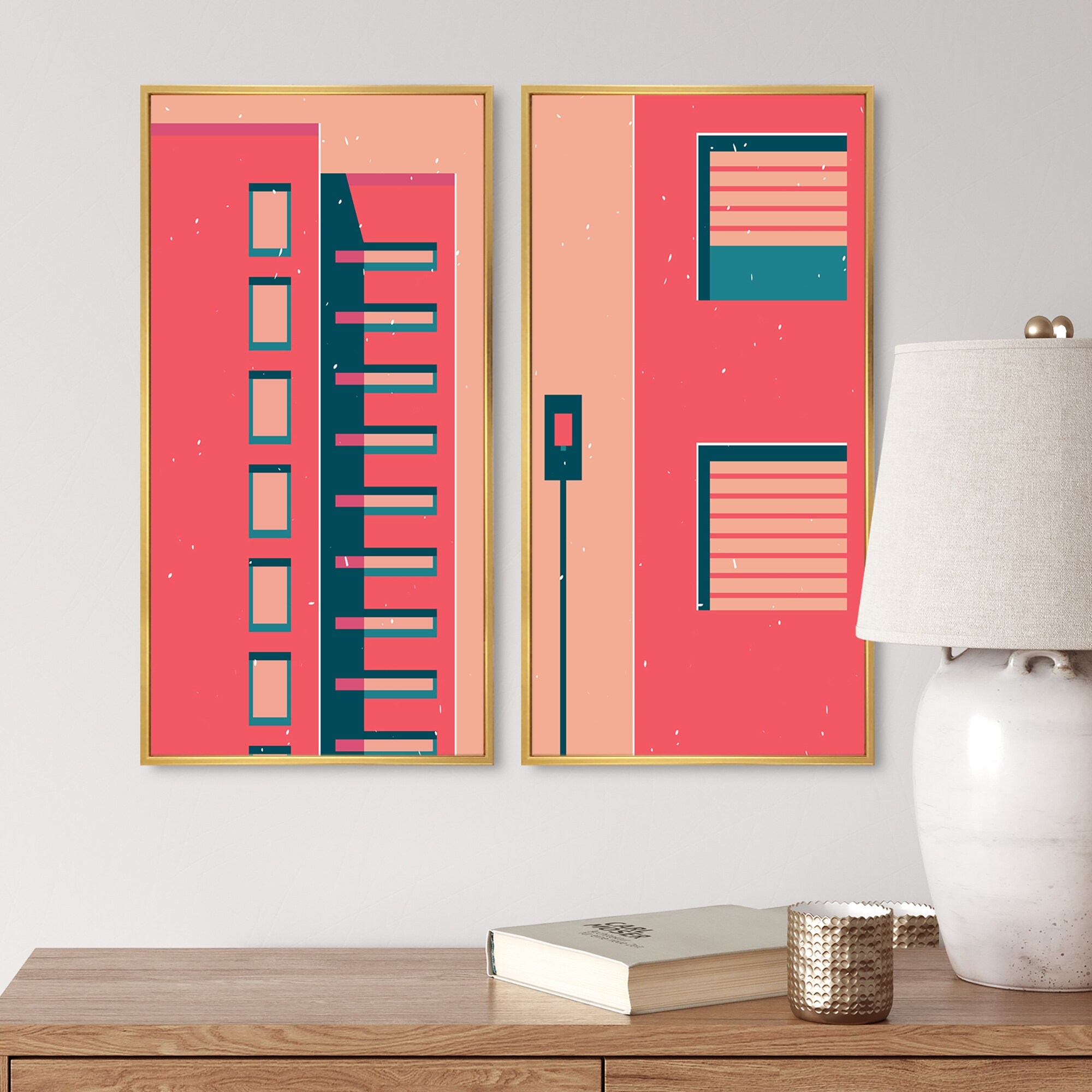Designart "Vintage Geometric Cityscapes II" Geometric Framed Art Set of 2 Pieces