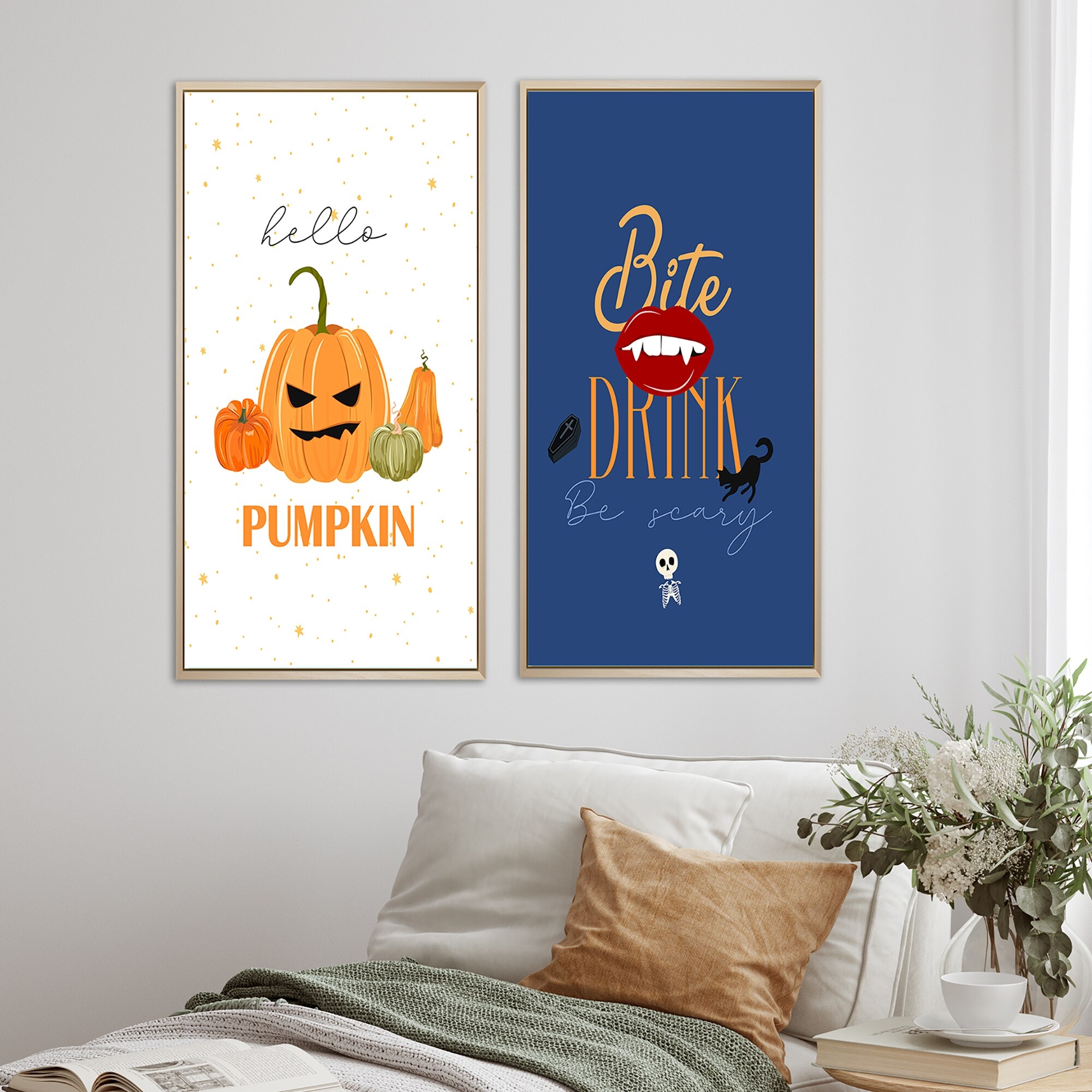 Designart "Happy Halloween With Mystical Elements I" Inspirational Framed Art Set of 2 Pieces