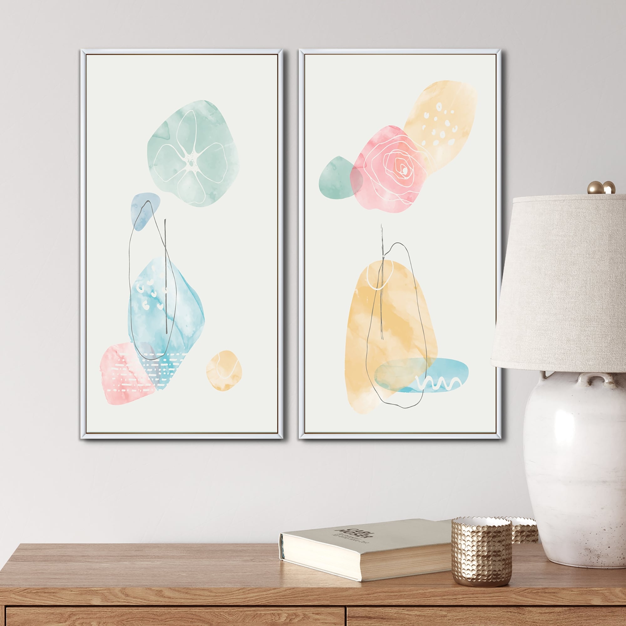 Designart "Minimalistic Foliage With Pastel Shapes II" Geometric Framed Art Set of 2 Pieces
