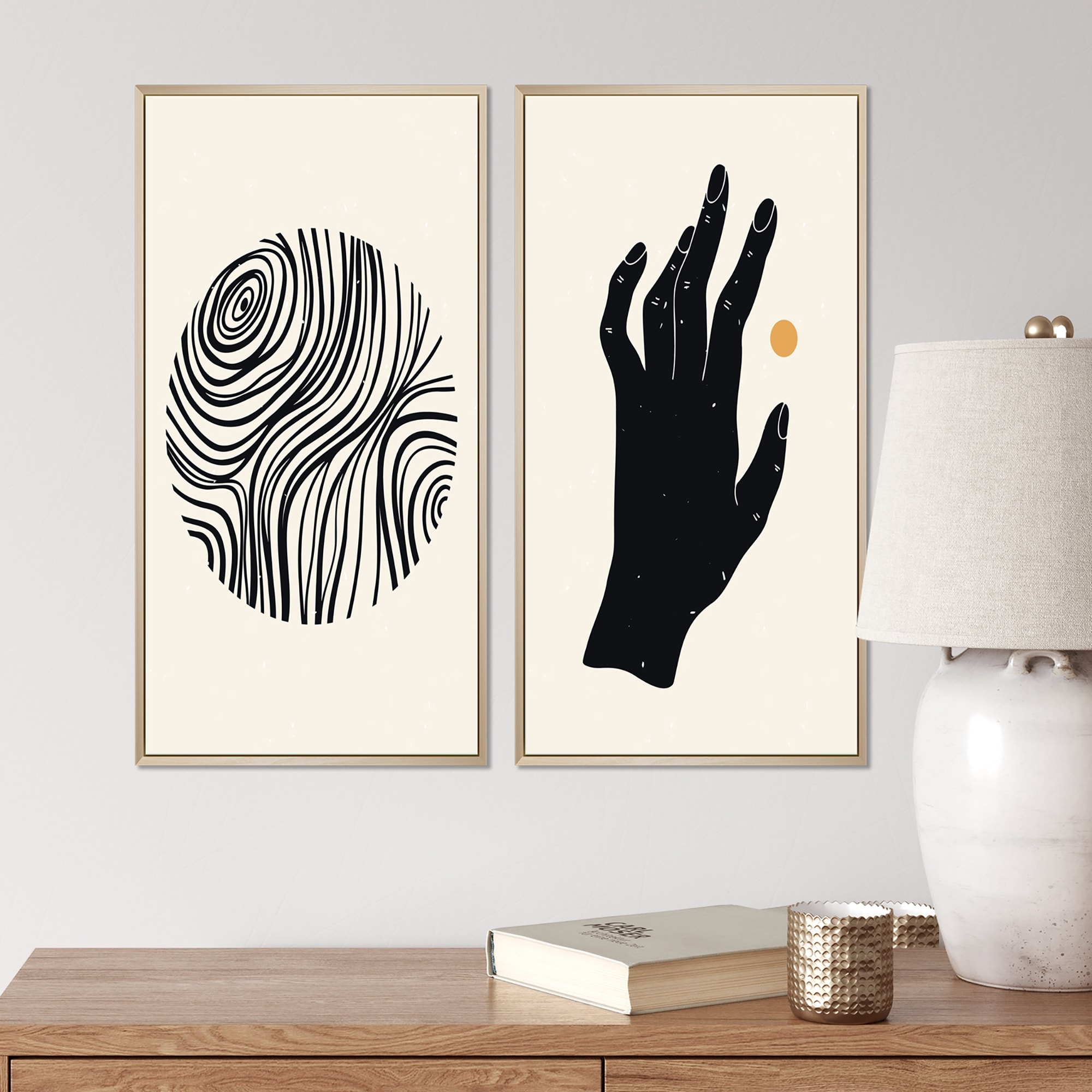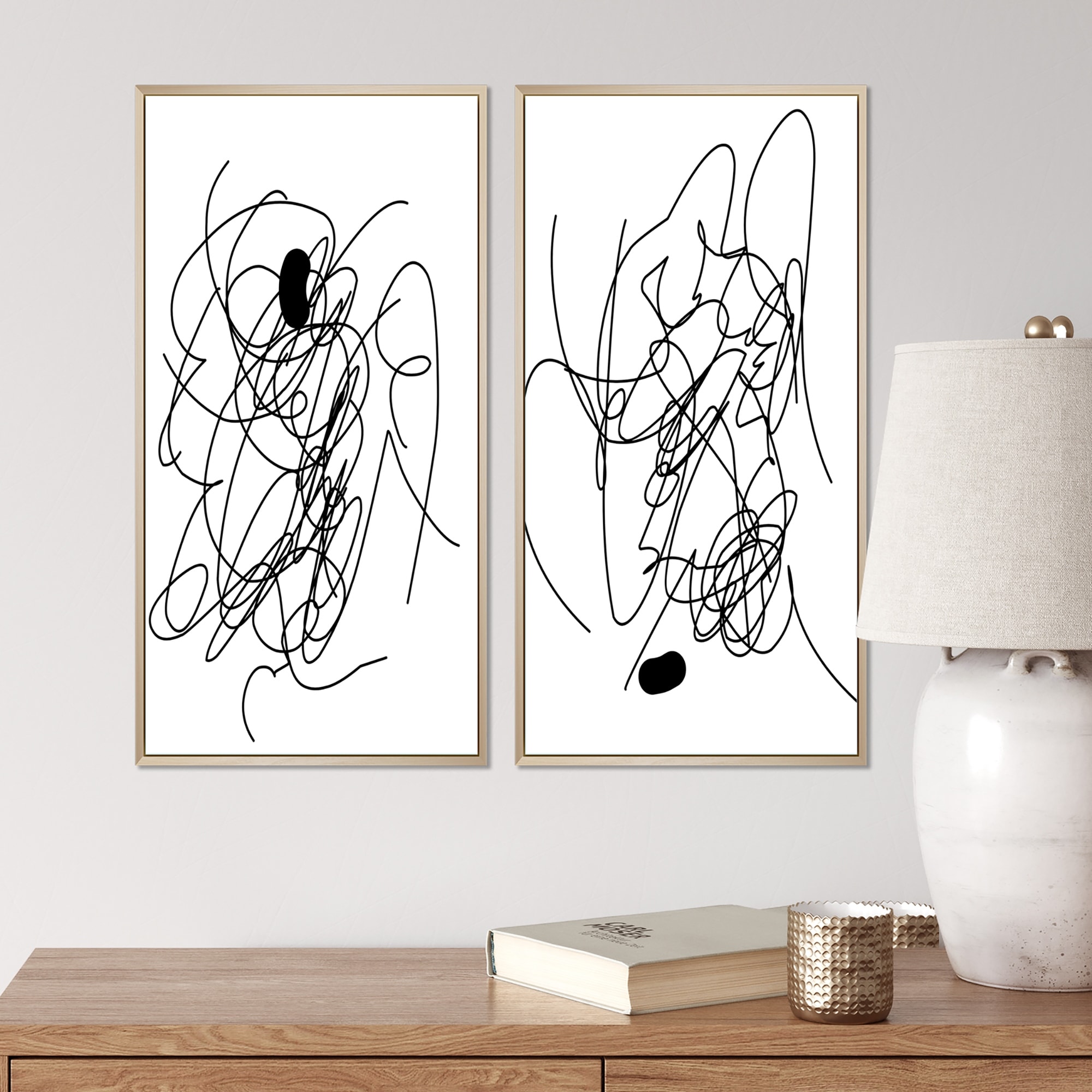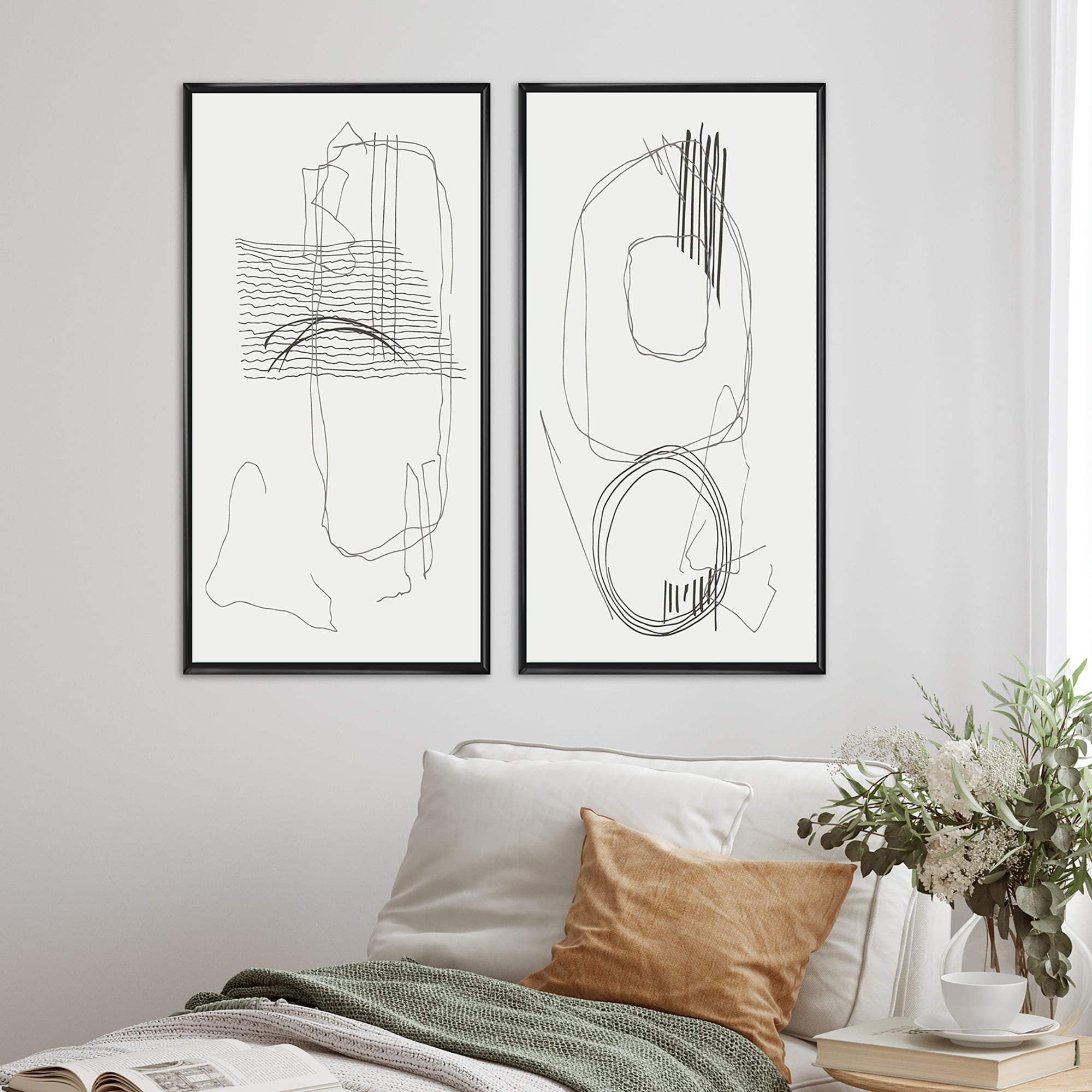 Designart "Minimalistic Monochrome Illustrations I" Geometric Framed Art Set of 2 Pieces