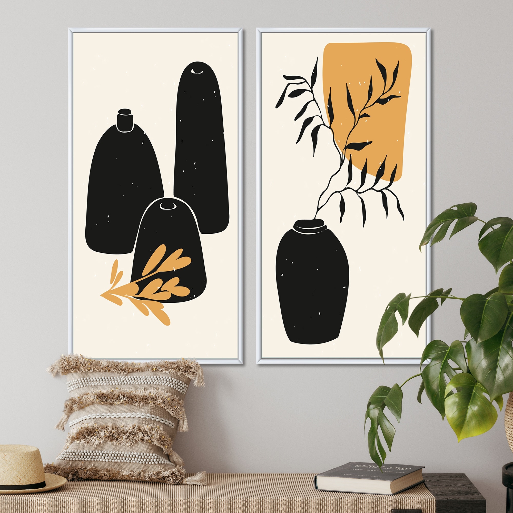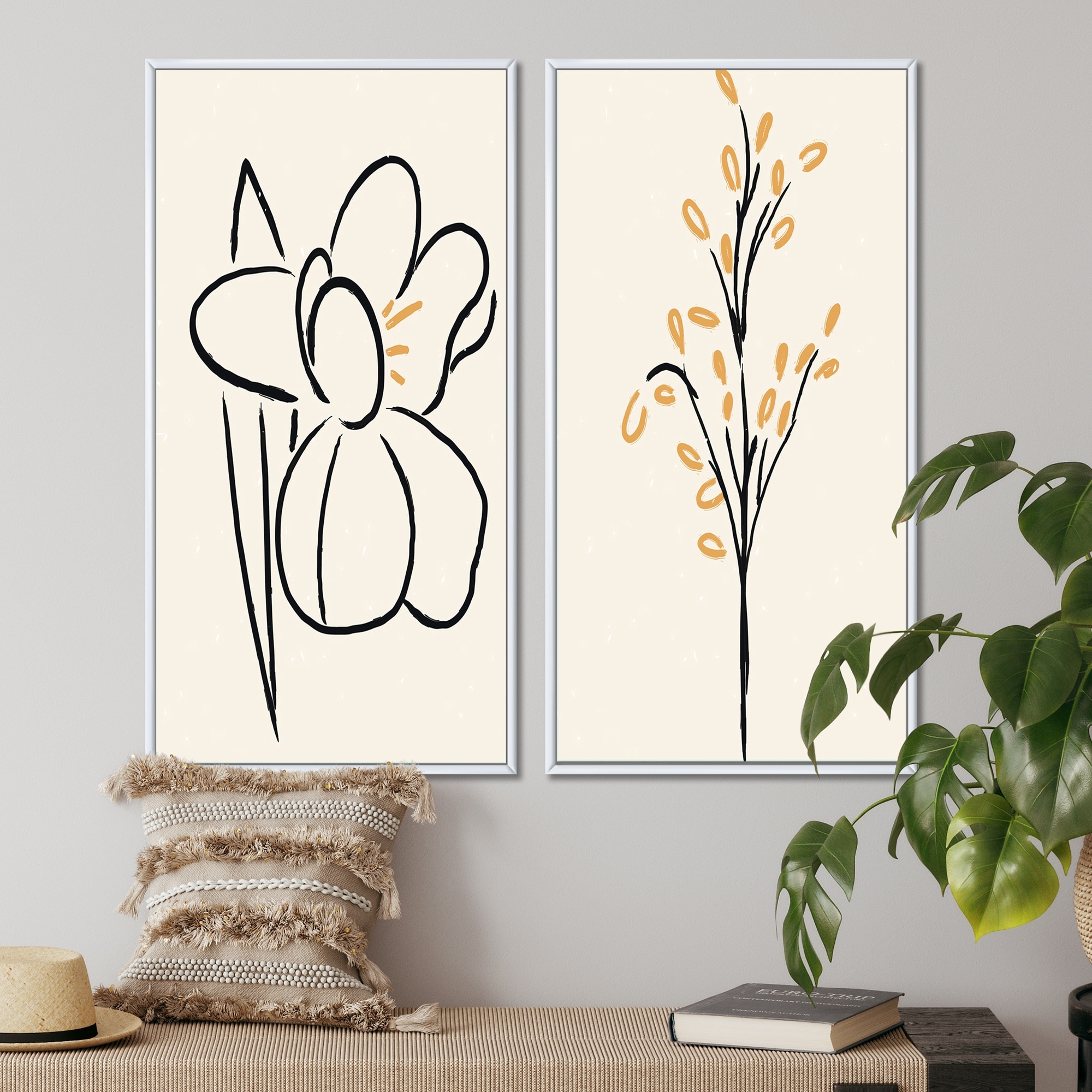 Designart "Dark Silhouettes of Plants on Cream II" Floral Framed Art Set of 2 Pieces