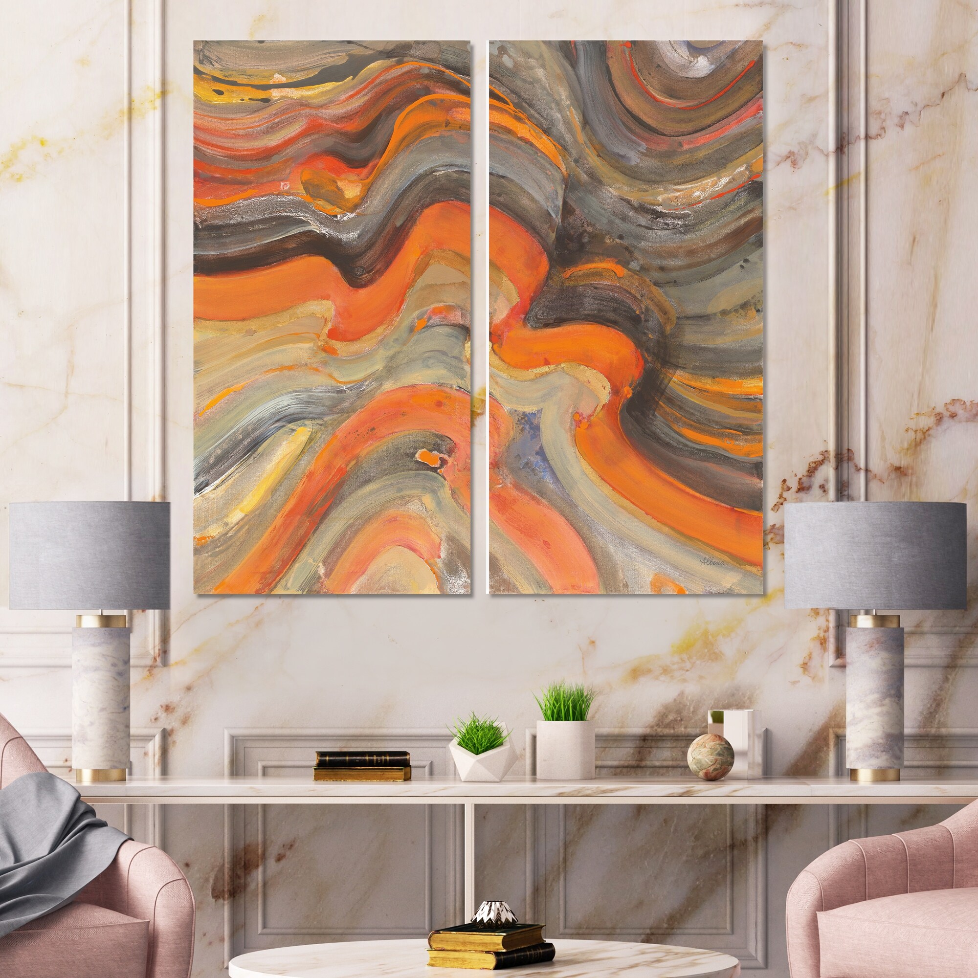 Designart "Abstract Gilded Orange Waves" Contemporary Canvas Wall Art Print 2 Piece Set