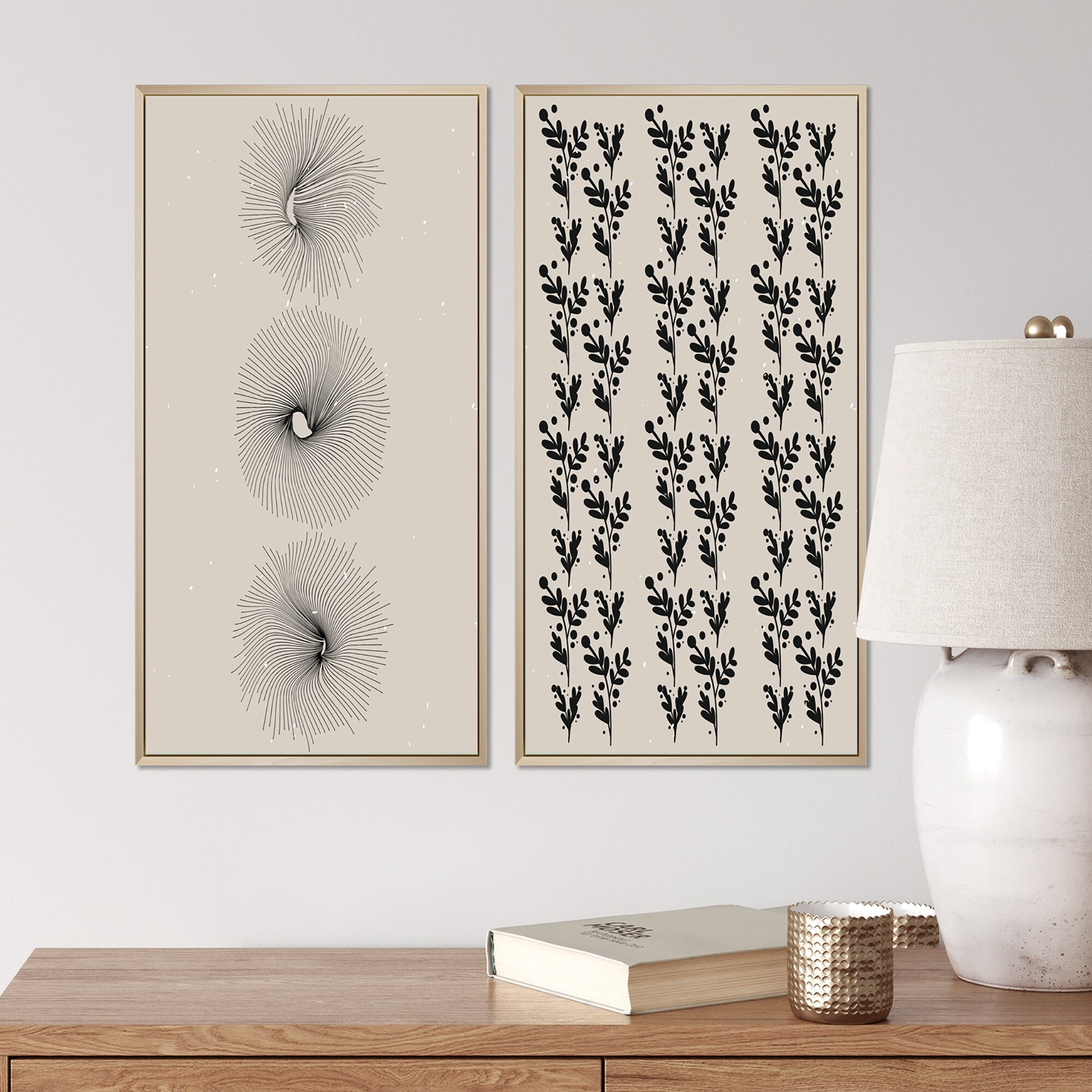 Designart "Monochrome Vintage Minimalistic Geometrics XII" Floral Framed Art Set of 2 Pieces