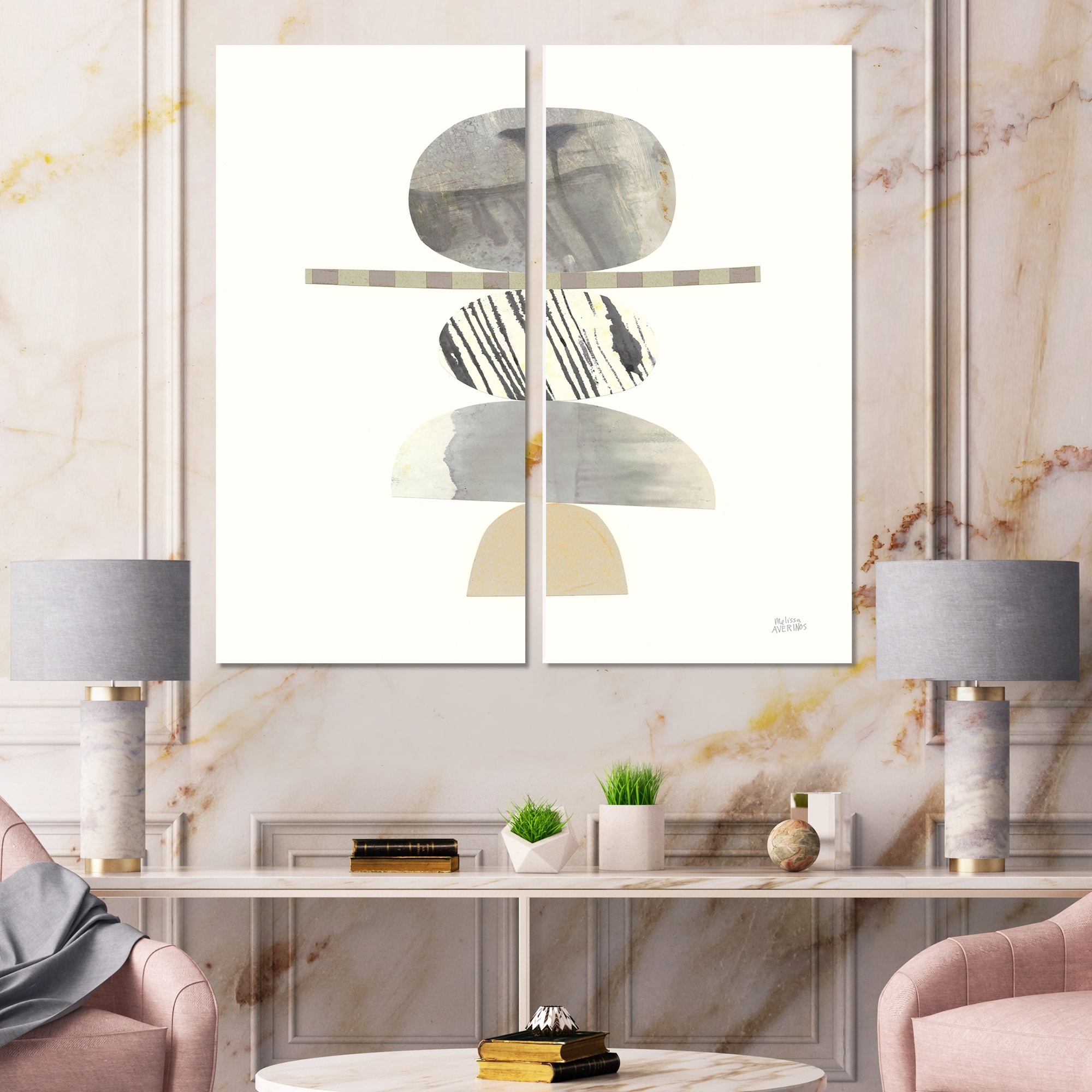 Designart "Geometric Balance Neutral I" Shabby Chic Canvas Wall Art Print 2 Piece Set